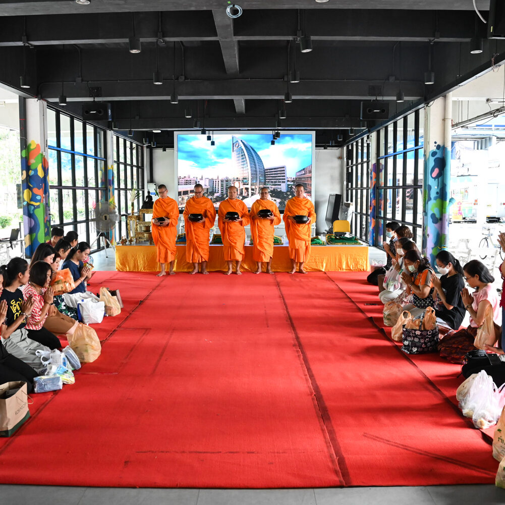 ชมรมพุทธศาสน์ สำนักพัฒนานักศึกษา มหาวิทยาลัยหอการค้าไทย จัดพิธีทำบุญตักบาตรข้าวสาร อาหารแห้ง แด่พระสงฆ์ จำนวน 5 รูป เพื่อความเป็นสิริมงคล ร่วมสืบสานขนบธรรมเนียมประเพณีอันดีงาม ถวายเป็นพุทธบูชา และส่งเสริมพุทธศาสนา โดยมีคณาจารย์ เจ้าหน้าที่ นักศึกษา และพุทธศาสนิกชนร่วมทำบุญตักบาตร ณ บริเวณโถงอเนกประสงค์ อาคาร 3 ชั้น 1 เมื่อวันที่ 30 พฤษภาคม 2567