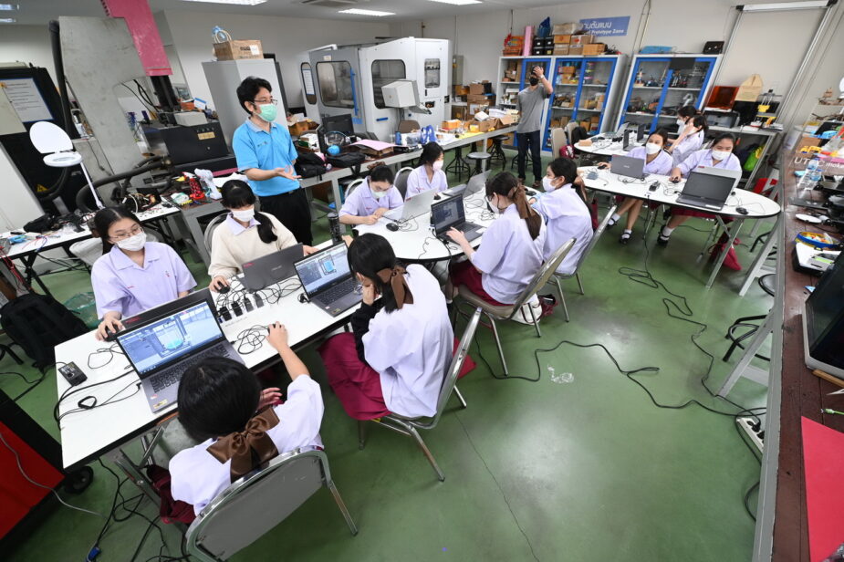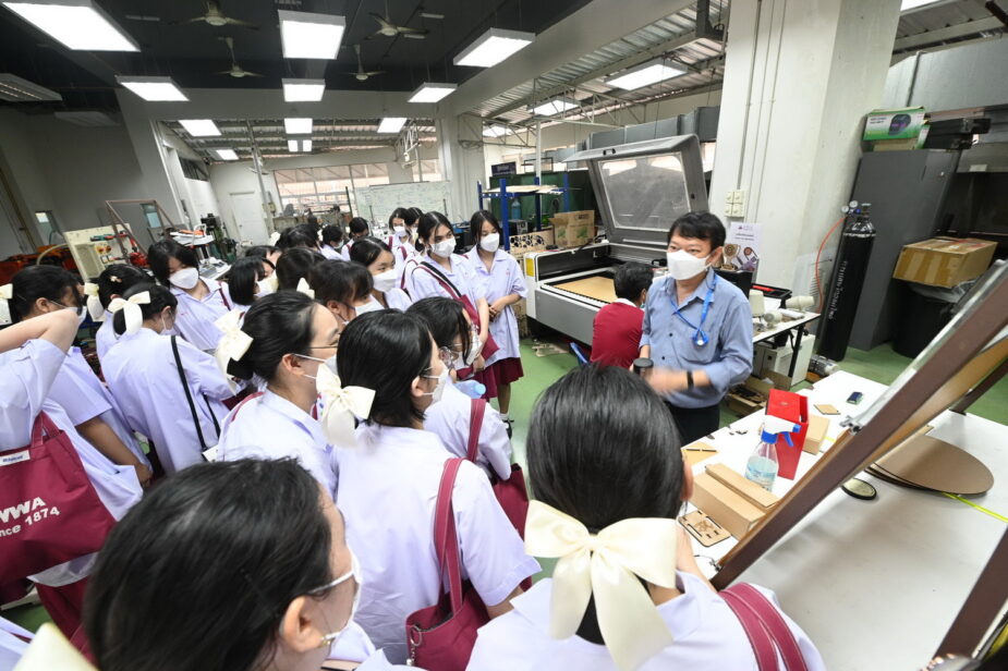 ผศ.ดร.ศุภเชษฐ์ อินเนตร คณบดีคณะวิศวกรรมศาสตร์ พร้อมทีมงานในคณะฯ ร่วมให้การต้อนรับน้องๆ นักเรียนจากโรงเรียนวัฒนาวิทยาลัย ในโอกาสที่มาเยี่ยมชมการเรียนการสอนในหลักสูตรต่างๆ และทดลองฝึกปฏิบัติการเก็บข้อมูลเข้าสู่ Excel ด้วย Node MCU และการควบคุม loT ผ่านระบบปฏิบัติการมือถือ ณ ห้อง UTCC Makerspace อาคาร 19 ชั้น 1 เมื่อวันที่ 27 มิถุนายน 2565