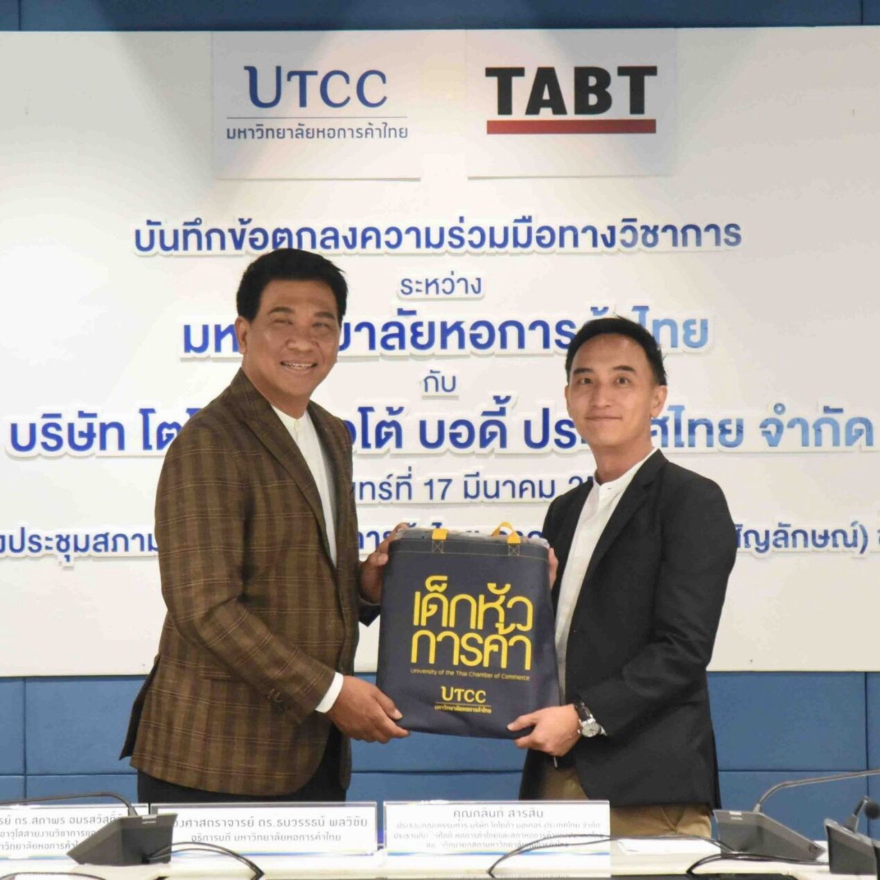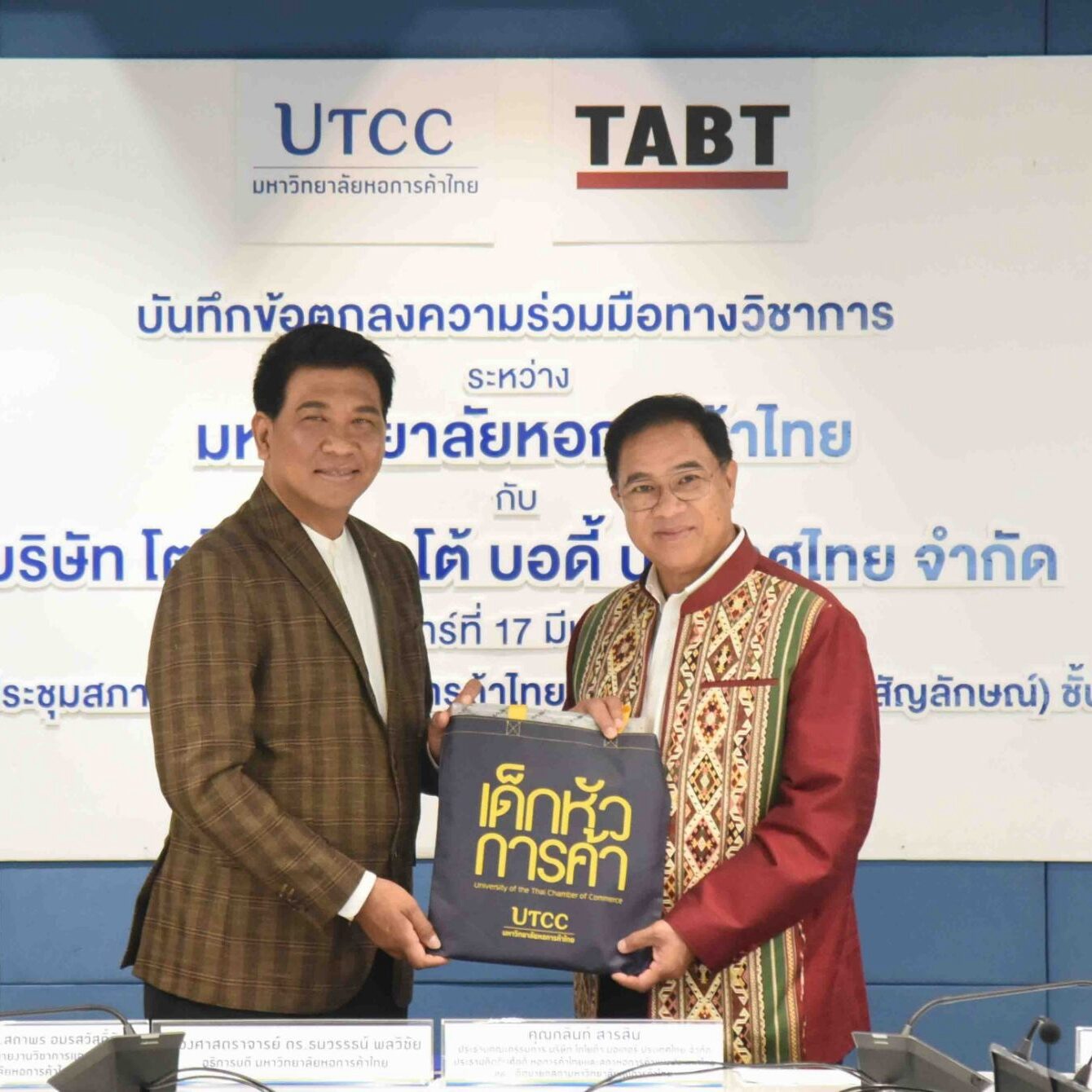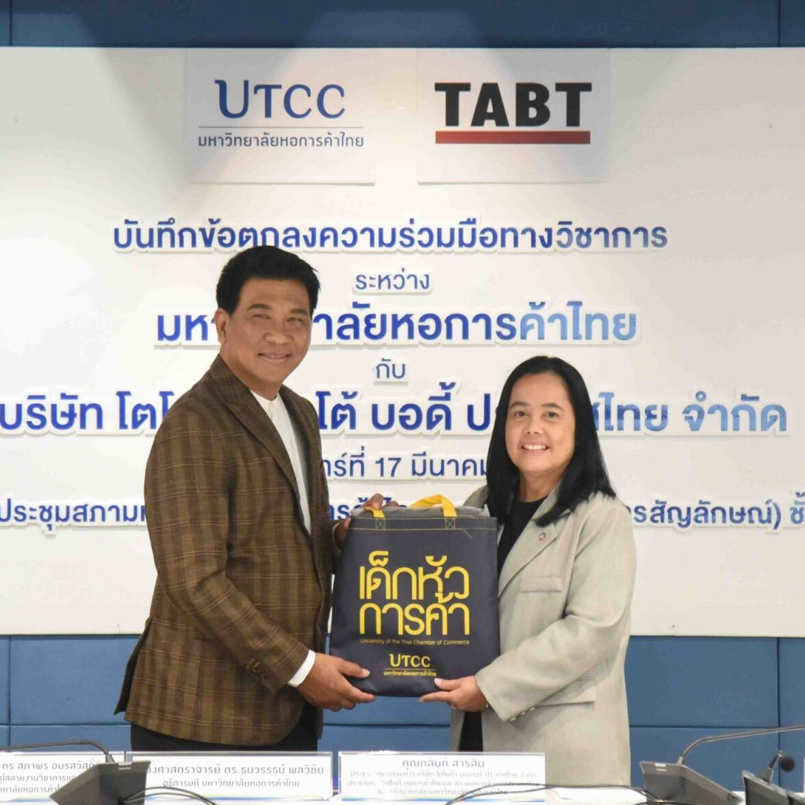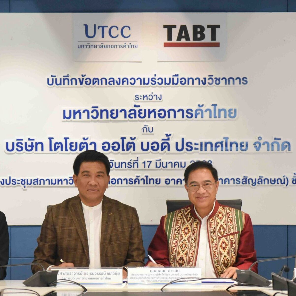 มหาวิทยาลัยหอการค้าไทย โดยบัณฑิตวิทยาลัย จัดพิธีลงนามบันทึกข้อตกลงความร่วมมือทางวิชาการ (MOU) ระหว่าง มหาวิทยาลัยหอการค้าไทย กับ บริษัท โตโยต้า ออโต้ บอดี้ ประเทศไทย จำกัด ได้รับเกียรติจาก คุณกลินท์ สารสิน ประธานคณะกรรมการ บริษัท โตโยต้า มอเตอร์ ประเทศไทย จำกัด และรองศาสตราจารย์ ดร.ธนวรรธน์ พลวิชัย อธิการบดีมหาวิทยาลัยหอการค้าไทย ร่วมในพิธี โดยมี รองศาสตราจารย์ ดร.สถาพร อมรสวัสดิ์วัฒนา รองอธิการบดีอาวุโสสายงานวิชาการและงานวิจัย ลงนามความร่วมมือกับ นายกำพล ปรัชญาเศรษฐ ผู้อำนวยการฝ่าย บริษัท โตโยต้า ออโต้ บอดี้ ประเทศไทย จำกัด เพื่อบูรณาการความร่วมมือระหว่างมหาวิทยาลัยหอการค้าไทยกับบริษัท ในการผลิตและส่งเสริมบุคลากรด้านวิชาการ เพื่อสร้างบุคลากรที่มีคุณภาพ ให้สอดคล้องกับความต้องการของทั้งสองหน่วยงาน ซึ่งมี ดร.อารดา มหามิตร คณบดีบัณฑิตวิทยาลัย มหาวิทยาลัยหอการค้าไทย และ นางปวีณา นันทิกุลวาณิช ประธานกรรมการบริหาร บริษัท โตโยต้า ออโต้ บอดี้ ประเทศไทย จำกัด ร่วมลงนามเป็นพยาน ณ ห้องประชุมสภามหาวิทยาลัย (อาคารสัญลักษณ์) อาคาร 24 ชั้น 15 เมื่อวันที่ 17 มีนาคม 2568