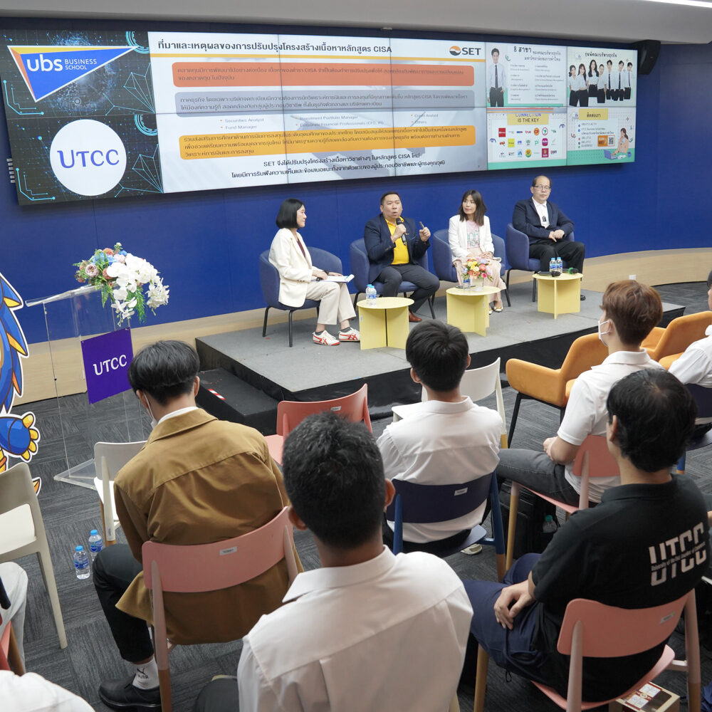 ภายในงานได้รับเกียรติจาก รองศาสตราจารย์ ดร.ธนวรรธน์ พลวิชัย อธิการบดี มหาวิทยาลัยหอการค้าไทย พร้อมด้วย คุณพรรณวดี ลดาวัลย์ ณ อยุธยา ผู้ช่วยผู้จัดการ หัวหน้ากลุ่มพัฒนางานความรู้ ตลาดทุน และหัวหน้างานกลุ่มงานสื่อสารองค์กร ตลาดหลักทรัพย์แห่งประเทศไทย กล่าวถึงความร่วมมือของทั้ง 2 องค์กร โดยมีคณะผู้บริหารจากคณะบริหารธุรกิจและตลาดหลักทรัพย์แห่งประเทศไทย ร่วมในงาน ณ ห้องปฏิบัติการเทรดหุ้น ห้อง B4: Billion Quarter (อาคาร 7 ชั้น 1) มหาวิทยาลัยหอการค้าไทย เมื่อวันที่ 18 กุมภาพันธ์ 2568