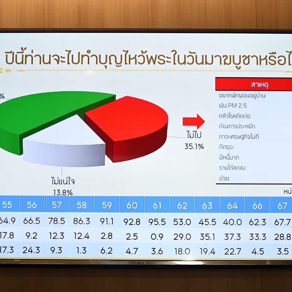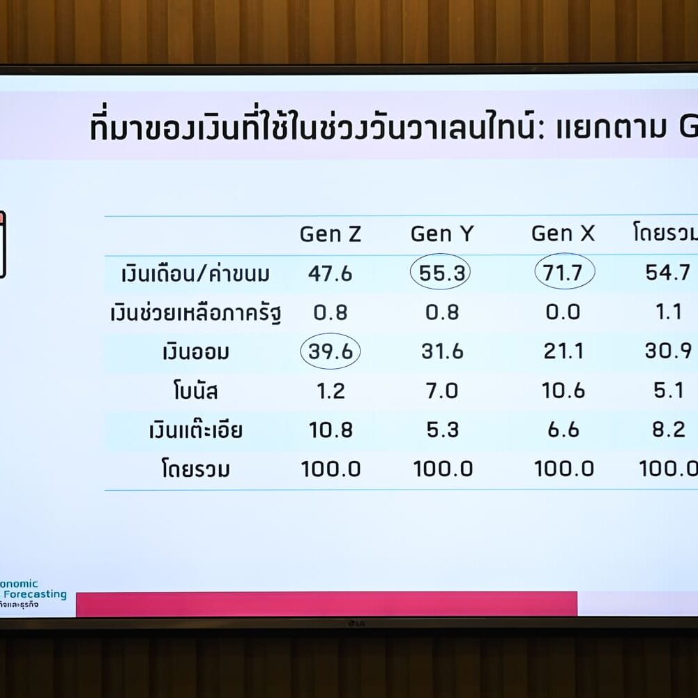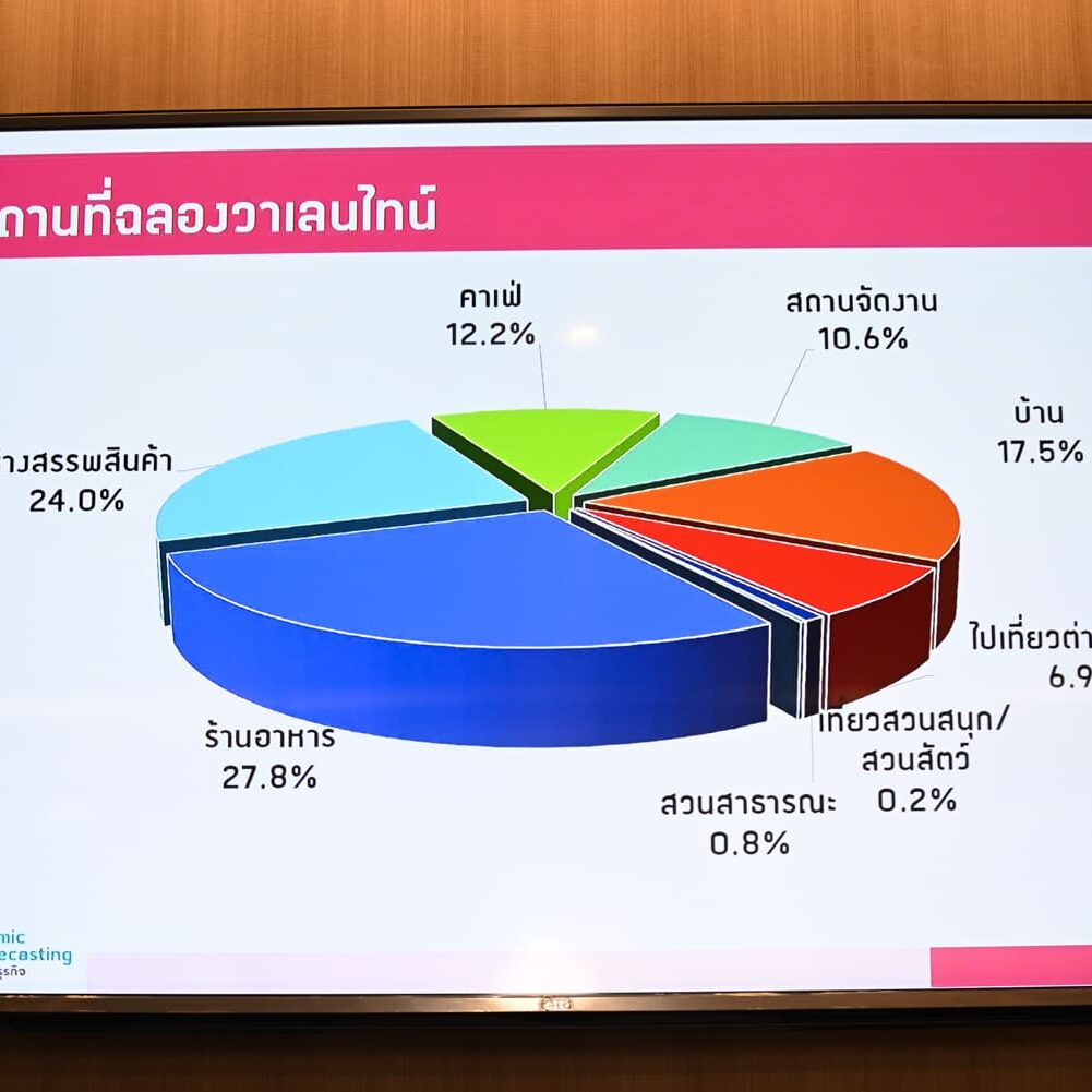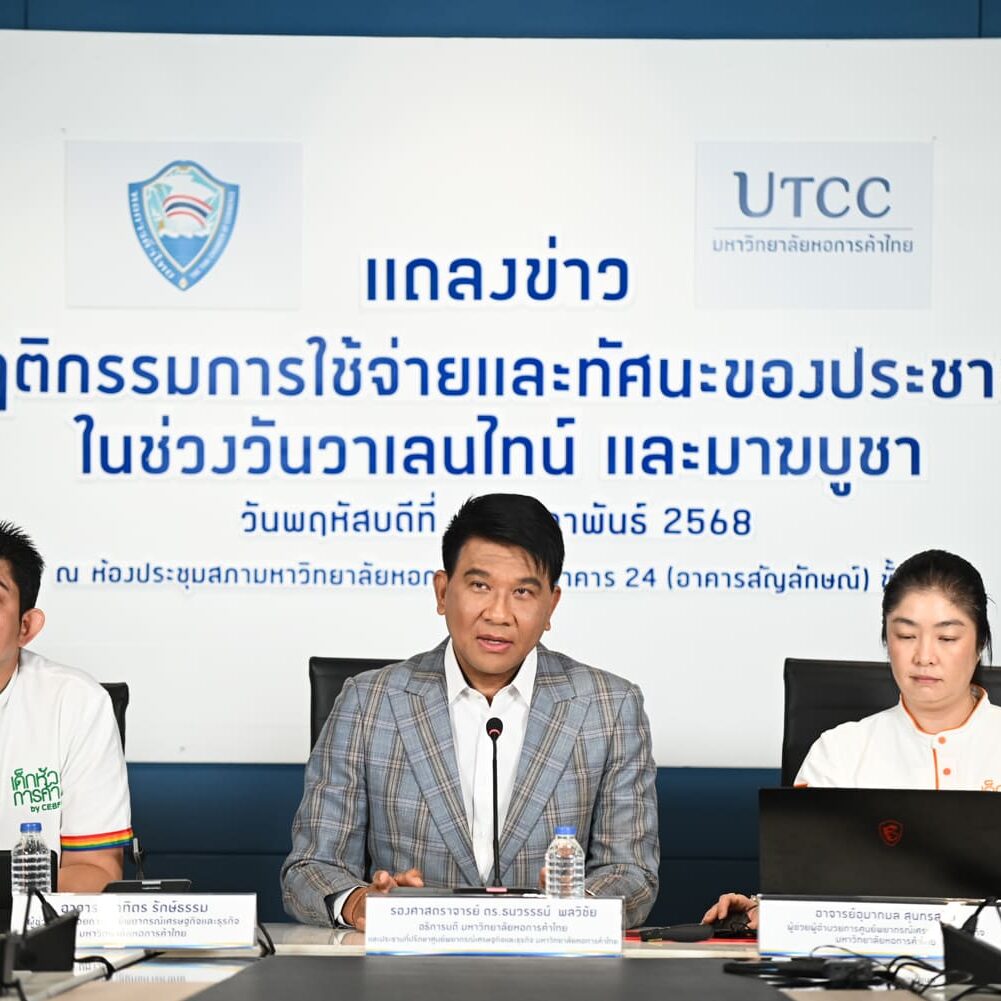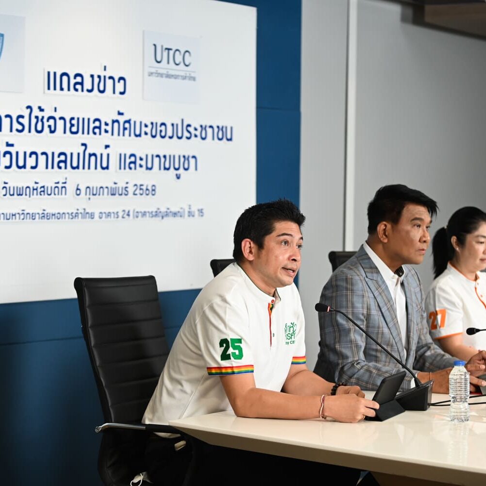 รองศาสตราจารย์ ดร.ธนวรรธน์ พลวิชัย อธิการบดีมหาวิทยาลัยหอการค้าไทย และที่ปรึกษาศูนย์พยากรณ์เศรษฐกิจและธุรกิจ อาจารย์อุมากมล สุนทรสุรัติ ผู้ช่วยผู้อำนวยการศูนย์พยากรณ์เศรษฐกิจและธุรกิจ มหาวิทยาลัยหอการค้าไทย พร้อมด้วย อาจารย์วาทิตร รักษ์ธรรม ผู้ช่วยผู้อำนวยการศูนย์พยากรณ์เศรษฐกิจและธุรกิจ มหาวิทยาลัยหอการค้าไทย เปิดเผยผลสำรวจพฤติกรรมการใช้จ่ายและทัศนะของประชาชนในช่วงวันวาเลนไทน์ และมาฆบูชา สำรวจการจับจ่ายใช้สอยของประชาชนในวันมาฆบูชา และวันวาเลนไทน์ คาดจะมีเงินสะพัดราว 5,200 ล้านบาท โดยวันมาฆบูชา จะมีเงินสะพัดราว 2,500 ล้านบาท เพิ่มขึ้นจากปีก่อน 2.81% ส่วนวันวาเลนไทน์ จะมีเงินสะพัดเกือบ 2,700 ล้านบาท เพิ่มขึ้นจากปีก่อน 7.2% เมื่อวันที่ 6 กุมภาพันธ์ 2568 ณ ห้องประชุมสภามหาวิทยาลัยหอการค้าไทย อาคาร 24 ชั้น 15 มหาวิทยาลัยหอการค้าไทย