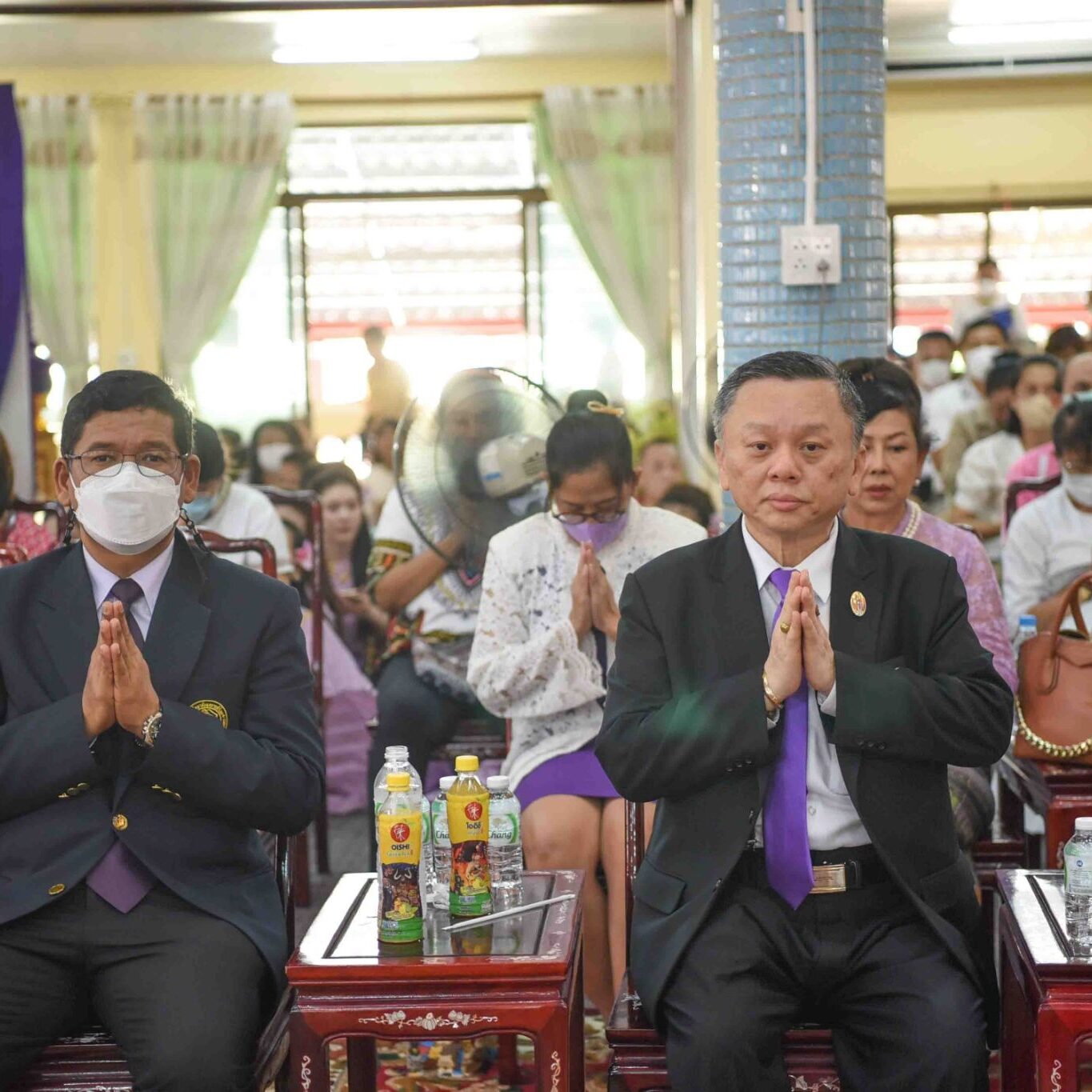 โดยมีคณะผู้บริหาร ม.หอการค้าไทย ผศ.ลักขณา เศาธยะนันท์ รองอธิการบดีอาวุโสสายงานบริหาร/อาจารย์วงเดือน สิมะโชคดี รองอธิการบดีฝ่ายบริหาร/อาจารย์ สมพงษ์ แก้วเจริญไพศาล รองอธิการบดีฝ่ายยุทธศาสตร์และกิจการพิเศษ /ผศ.วรวิทย์ จิตรงค์ ผู้ช่วยอธิการบดีฝ่ายวิชาการ พร้อมด้วย คณาจารย์ พนักงาน นักศึกษา และสมาคมศิษย์เก่าม.หอการค้าไทย ร่วมในพิธี