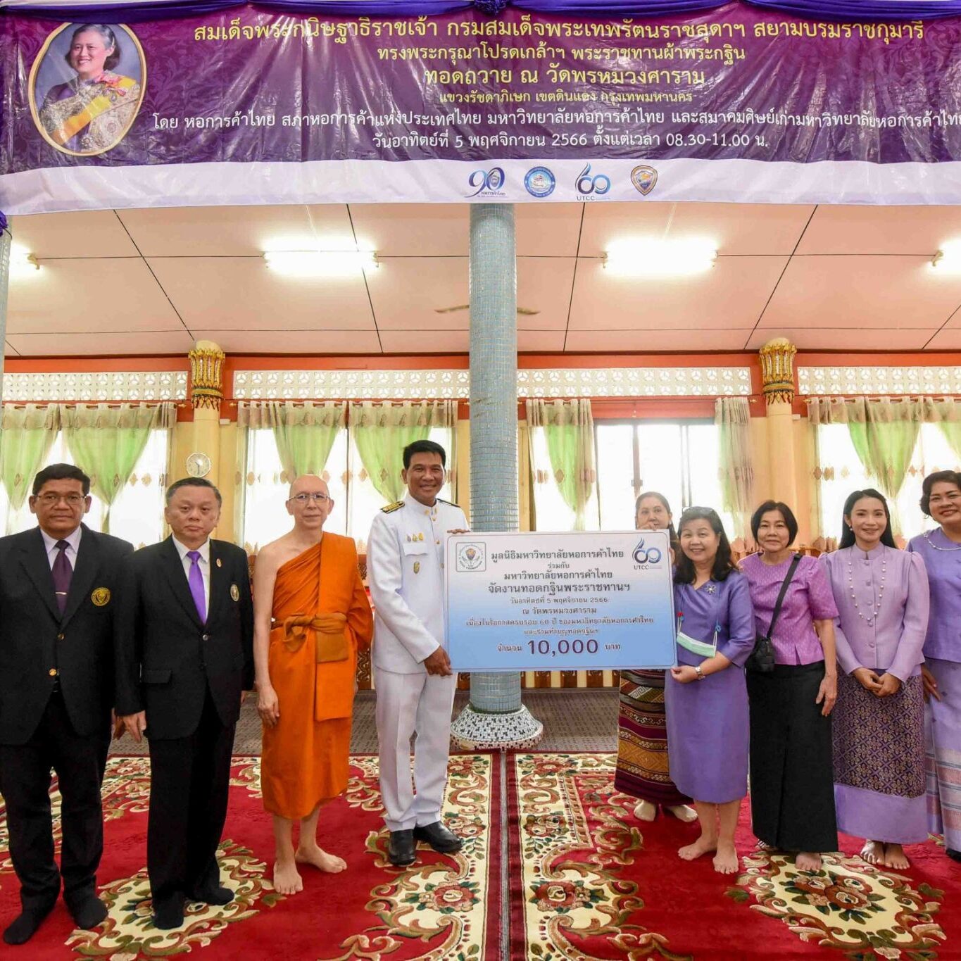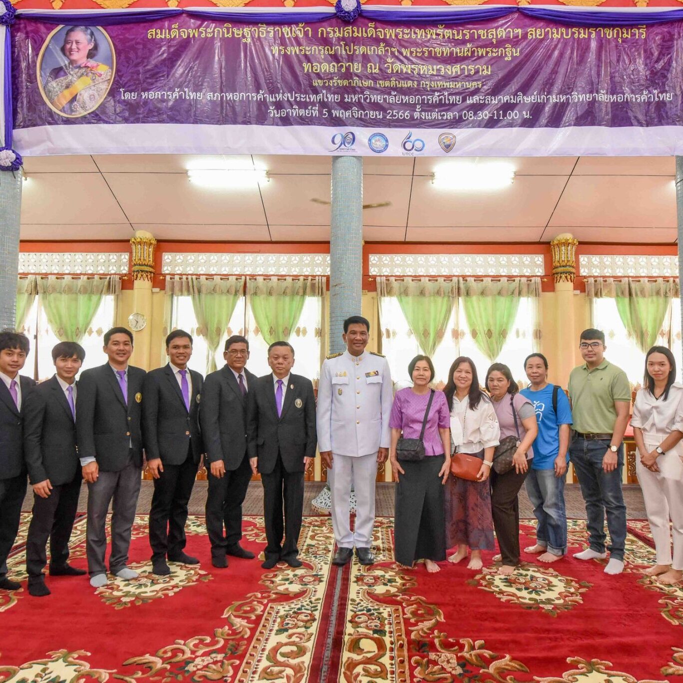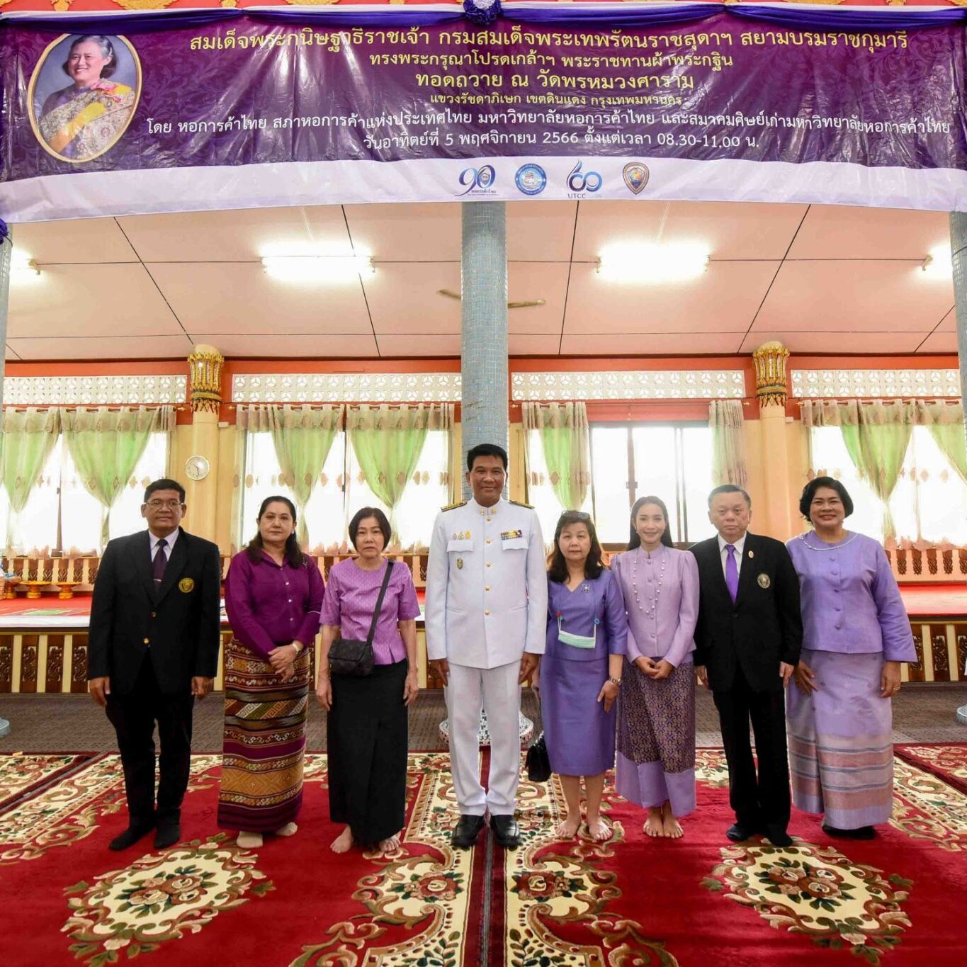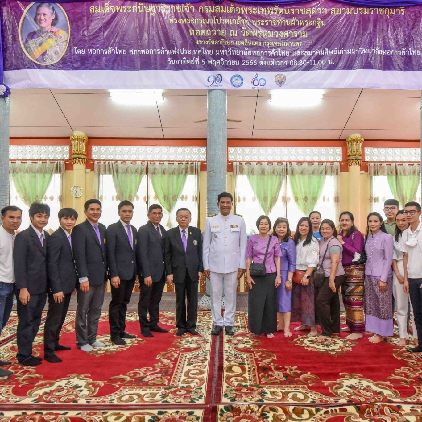 สมเด็จพระกนิษฐาธิราชเจ้า กรมสมเด็จพระเทพรัตนราชสุดาฯ สยามบรมราชกุมารี ทรงพระกรุณาโปรดเกล้าฯ พระราชทานผ้าพระกฐินให้ รศ.ดร.ธนวรรธน์ พลวิชัย อธิการบดีมหาวิทยาลัยหอการค้าไทย เชิญไปทอดถวายยังที่ชุมนุมสงฆ์ ณ วัดพรหมวงศาราม แขวงรัชดาภิเษก เขตดินแดง กรุงเทพมหานคร ในวันอาทิตย์ที่ 5 พฤศจิกายน 2566 นับเป็นพระมหากรุณาธิคุณล้นเกล้าฯ อย่างหาที่สุดมิได้