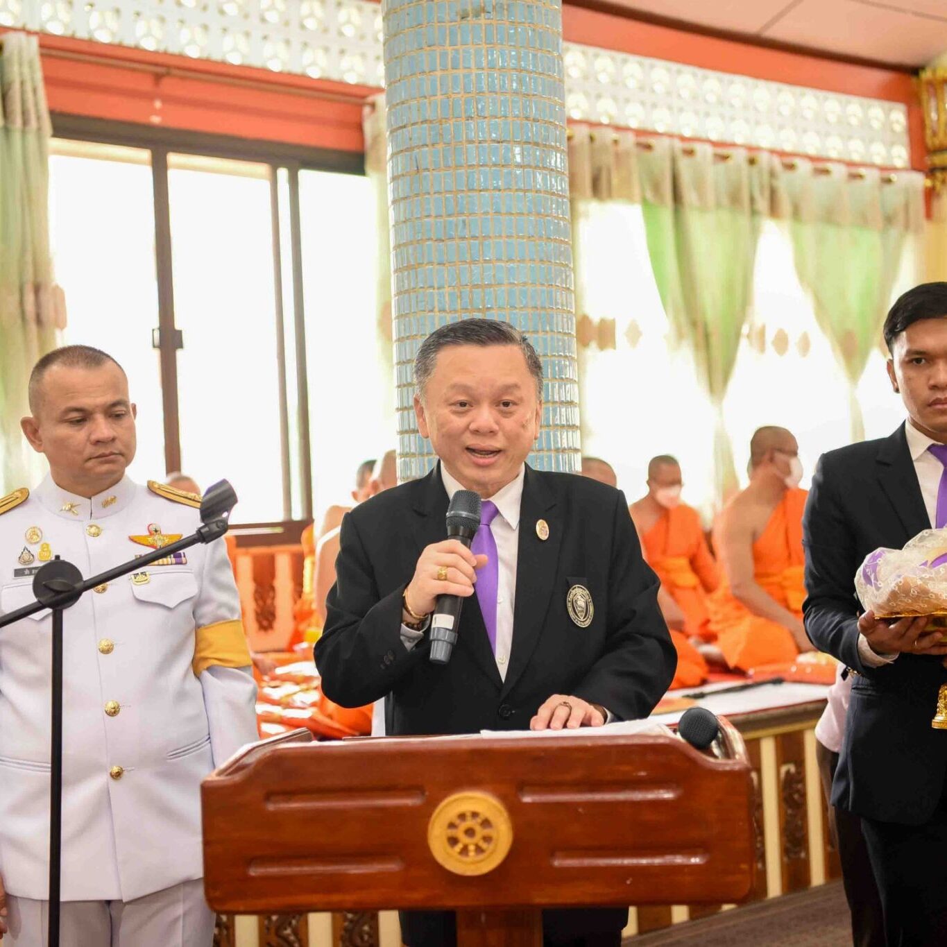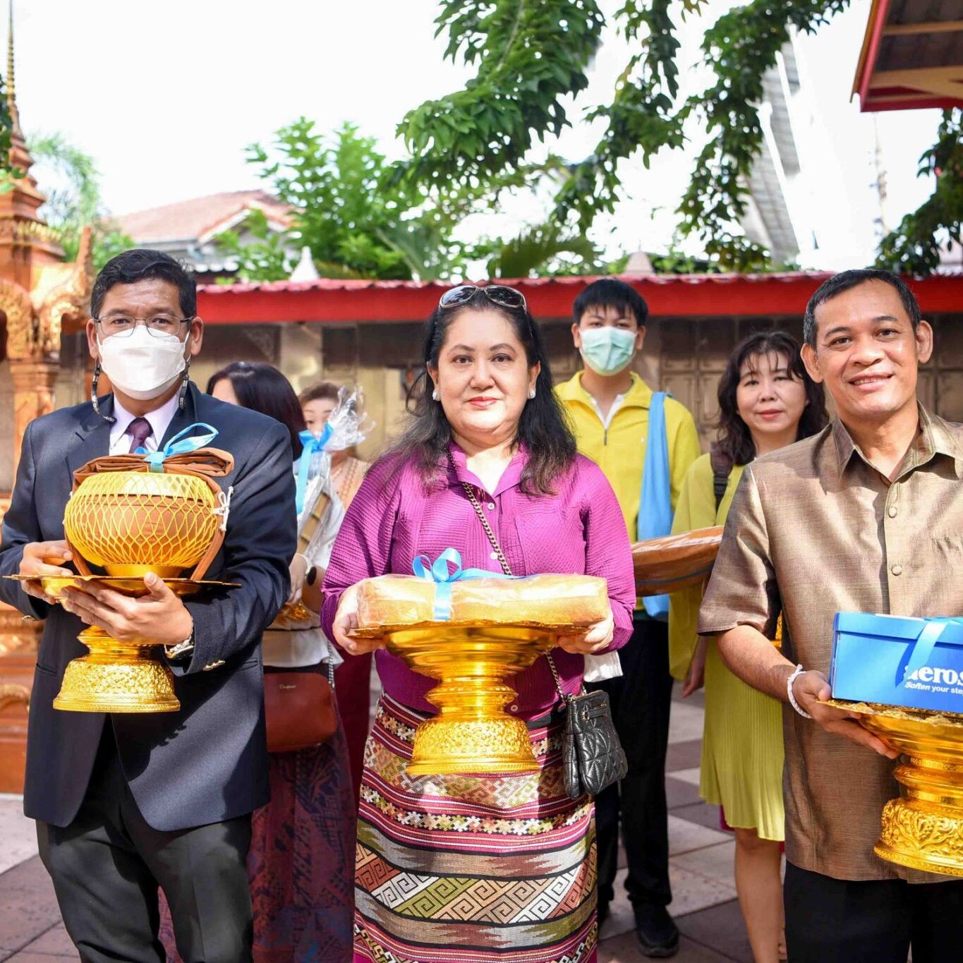 ทั้งนี้ อาจารย์ สมพงษ์ แก้วเจริญไพศาล รองอธิการบดีฝ่ายยุทธศาสตร์และกิจการพิเศษ ประธานคณะทำงานดำเนินการทอดกฐินประจำปี 2566 กล่าวว่า รศ.ดร.ธนวรรธน์ พลวิชัย อธิการบดีมหาวิทยาลัยหอการค้าไทย พร้อมด้วย คณะผู้บริหาร/คณาจารย์ นักศึกษา และประชาชนที่มาร่วมงาน ต่างปลื้มปิติและสำนึกในพระมหากรุณาธิคุณล้นเกล้าฯ อย่างหาที่สุดมิได้ และการดำเนินงานในการอัญเชิญผ้าพระกฐินพระราชทานไปทอดถวายฯ อธิการบดี รศ.ดร.ธนวรรธน์ พลวิชัย มีเจตนารมณ์เพื่อเป็นการสืบศานต์อนุรักษ์วัฒนธรรมและประเพณีอันดีงามของชาติไทย ที่ส่งเสริมให้คณาจารย์ นักศึกษาและเยาวชนรุ่นใหม่ในสังคมไทย ได้เรียนรู้มีส่วนร่วมโดยตรงในการน้อมนำ ศาสตร์พระราชาเข้าใจ-เข้าถึง-พัฒนา มาเป็นแนวทางในการประพฤติปฎิบัติตน ธำรงรักษาเทิดทูนซึ่งสถาบันหลักของชาติ ศาสนา พระมหากษัตริย์ อันเป็นเอกลักษณ์ของชาติ