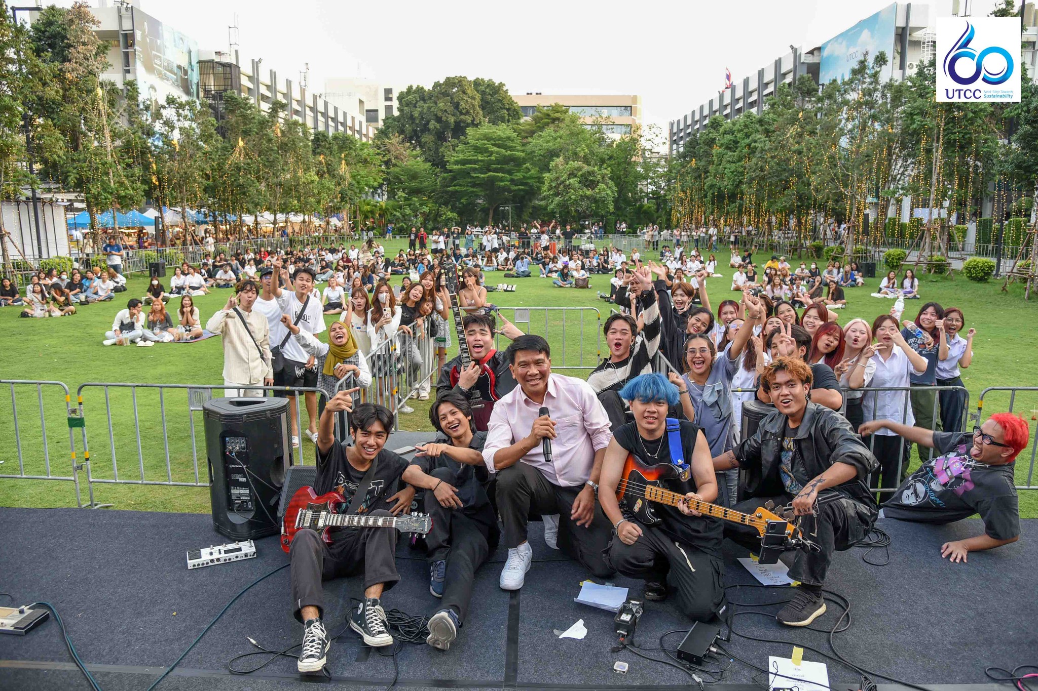 รศ.ดร.ธนวรรธน์ พลวิชัย อธิการบดีมหาวิทยาลัยหอการค้าไทย กล่าวเปิดงานและร่วมร้องเพลงโชว์ ในงาน Yard Fest! จัดโดยชมรมดนตรีสากล มหาวิทยาลัยหอการค้าไทย