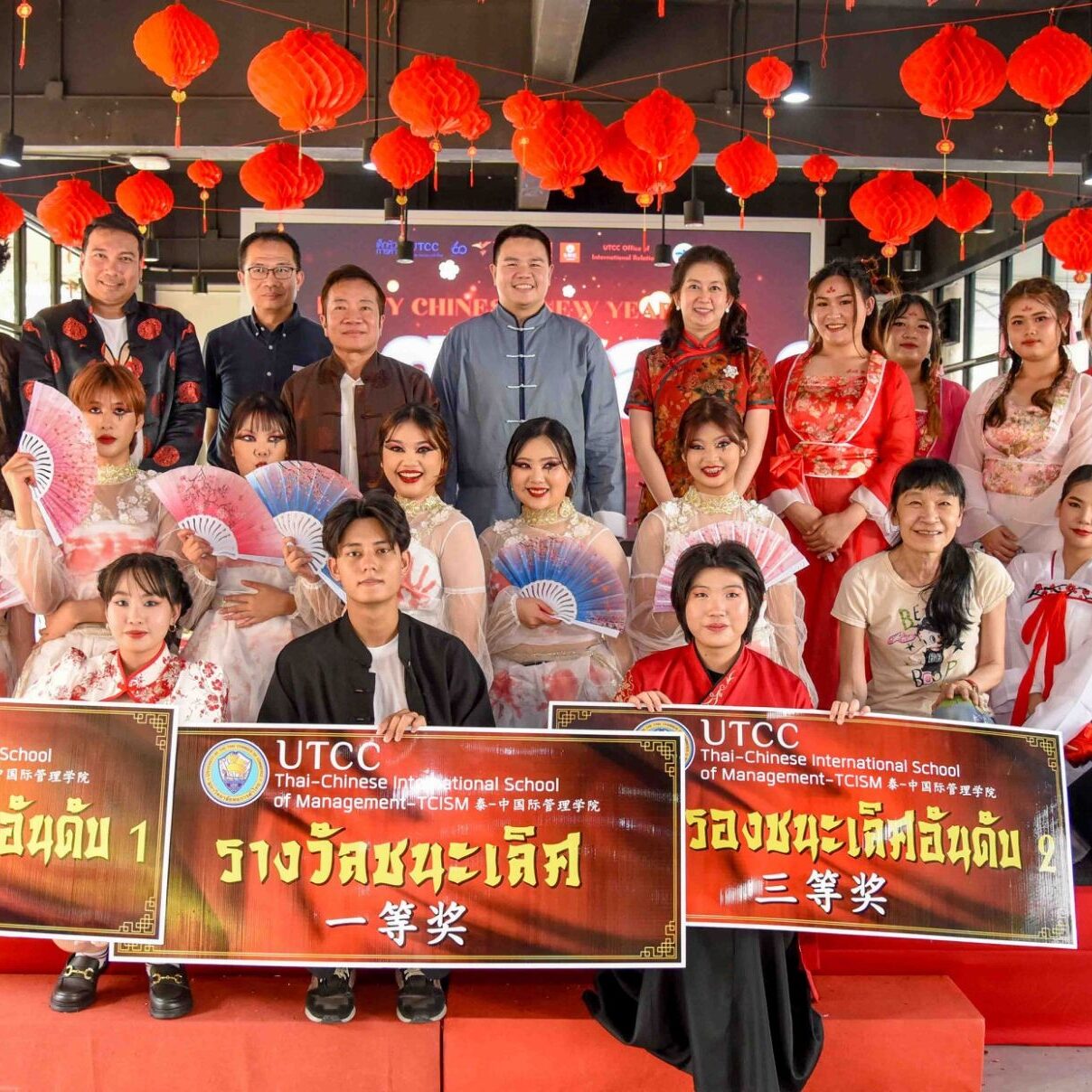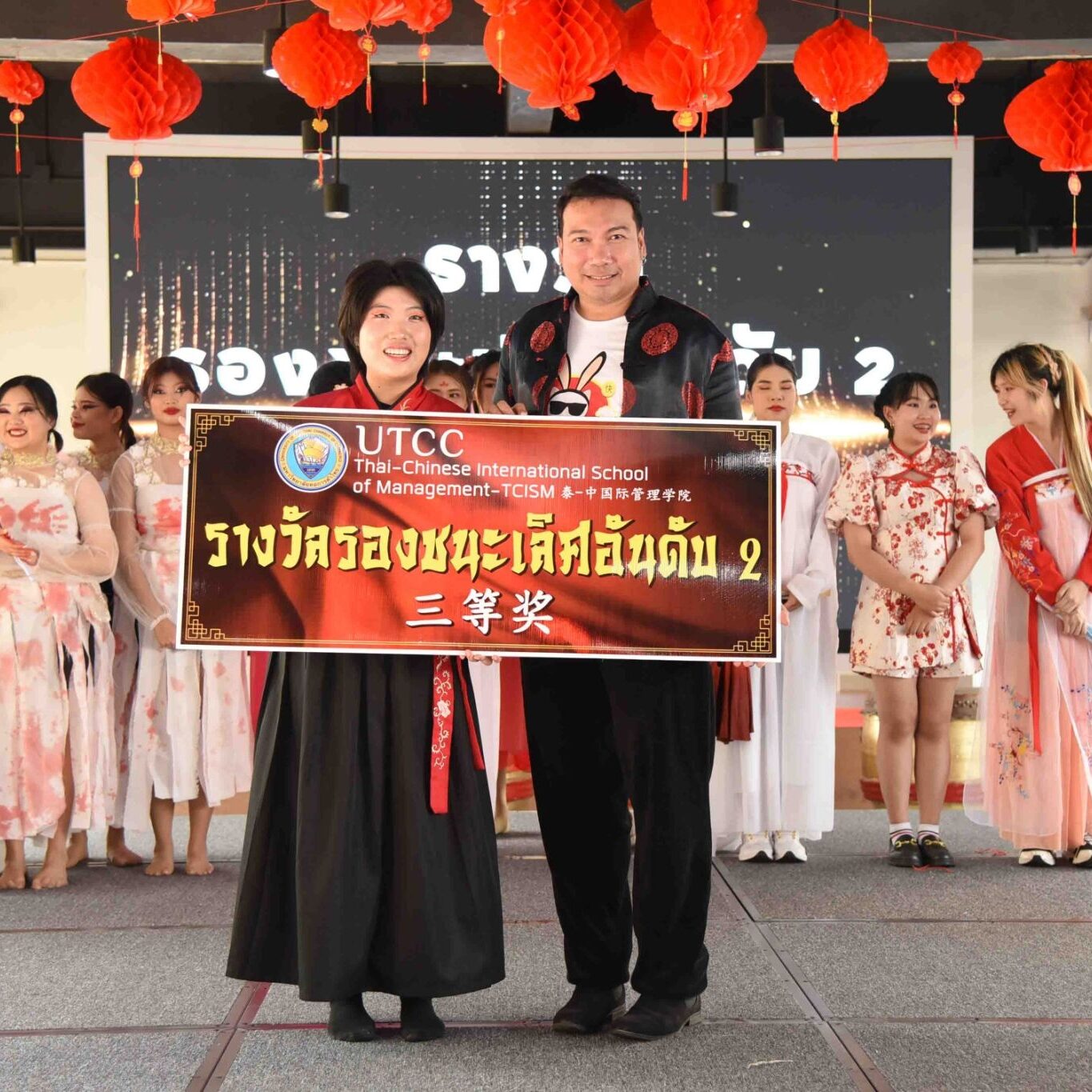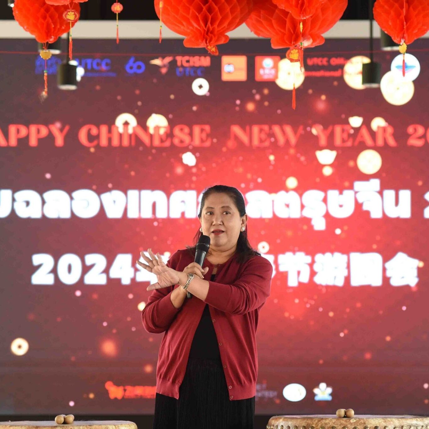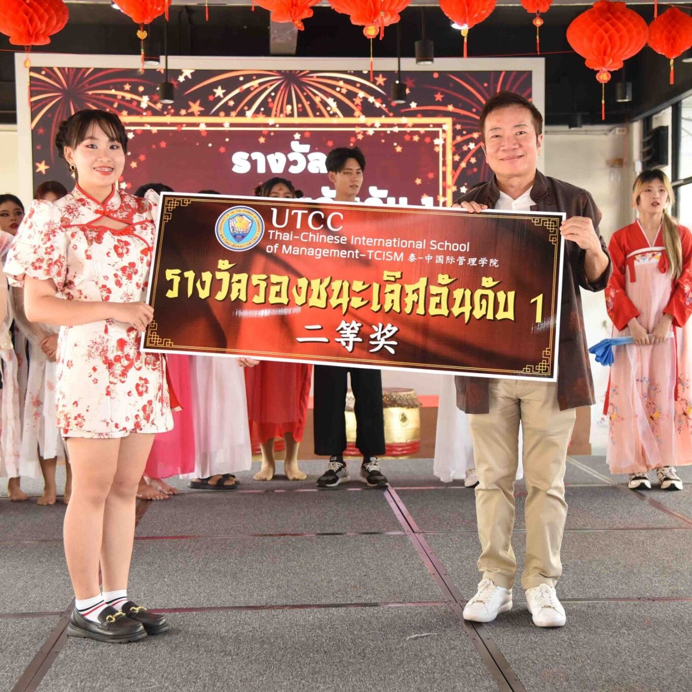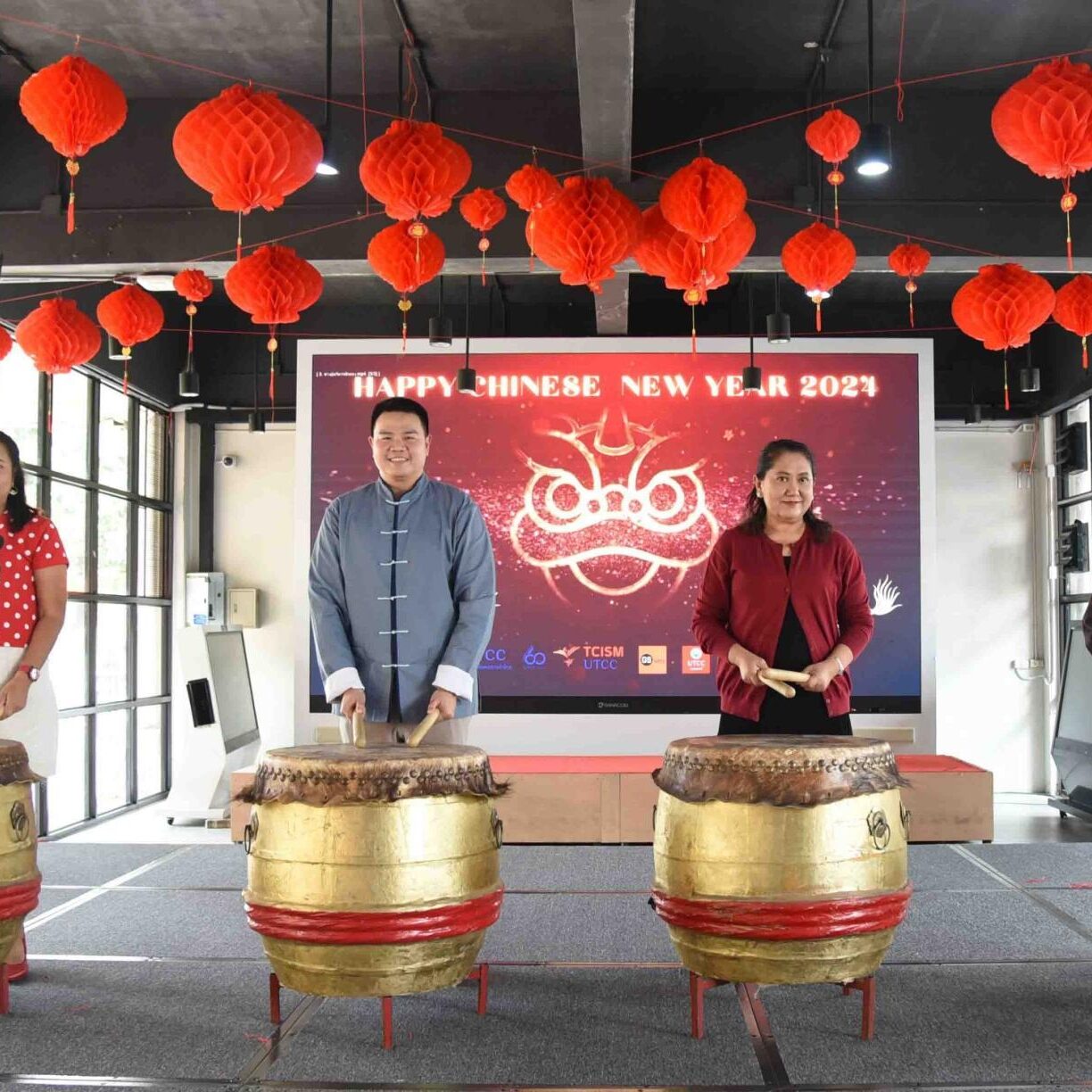อาจารย์วงเดือน สิมะโชคดี และรองอธิการบดีฝ่ายบริหาร ดร.พีรพงษ์ ฟูศิริ รองอธิการบดีฝ่ายวิเทศสัมพันธ์มหาวิทยาลัยหอการค้าไทย กล่าวเปิดงานเฉลิมฉลองเทศกาลตรุษจีนปีมังกรทอง 2024 (HAPPY CHINESE NEW YEAR 2024) จัดโดย วิทยาลัยนานาชาติไทย – จีน เพื่อการจัดการ ฝ่ายวิเทศสัมพันธ์ คณะมนุษยศาสตร์ และบัณฑิตวิทยาลัย