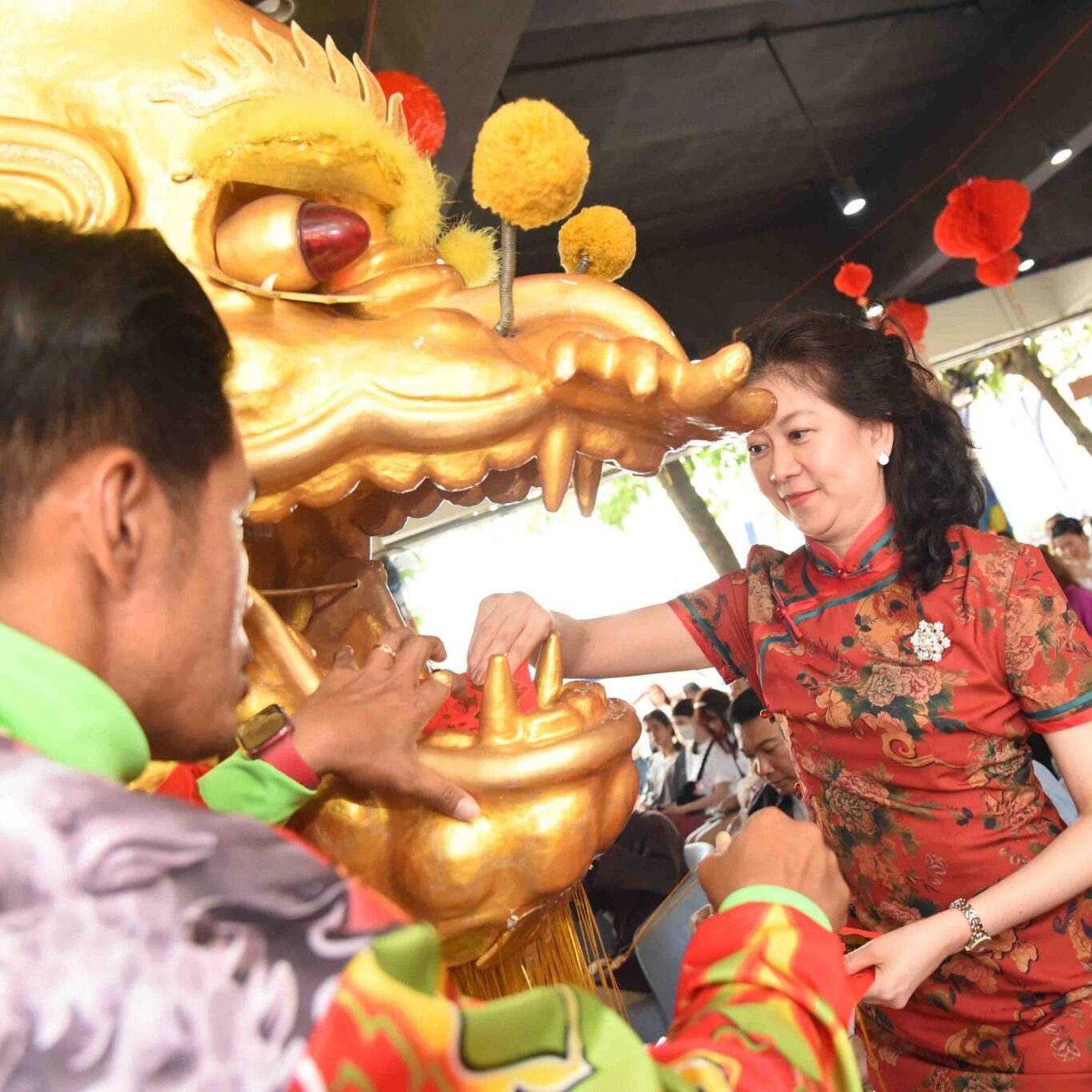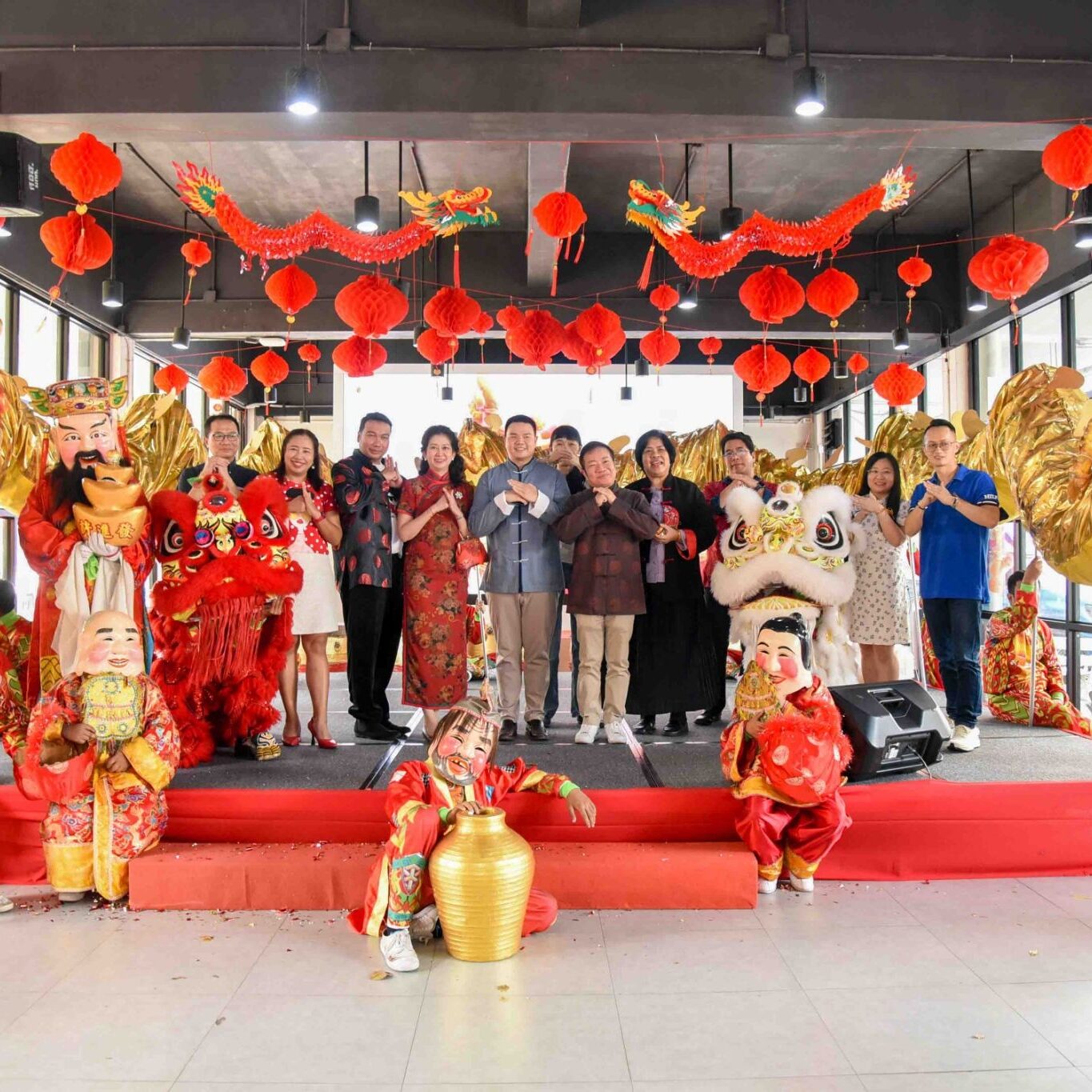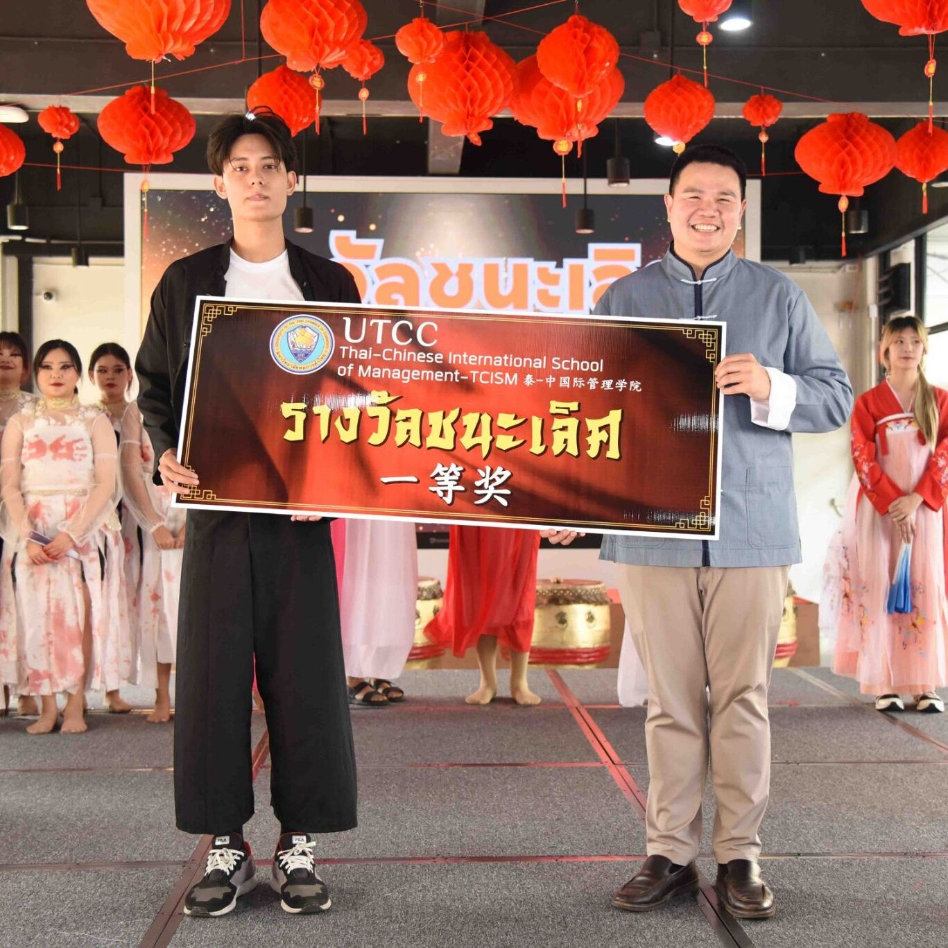 2024年2月1日泰-中国际管理学院、学校外事处、人文学院及研究生院联合举办2024金龙年春节游园会。泰国商会大学行政主管副校长翁端·西玛厝迪老师(AJ.Wongduen Simachokdee)及外事主管副校长披拉蓬·弗西里博士(Dr.Piraphong Foosiri)分别致开幕词。