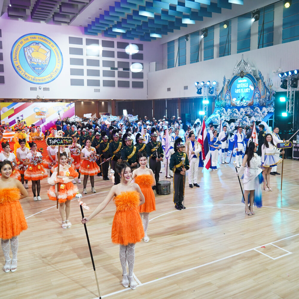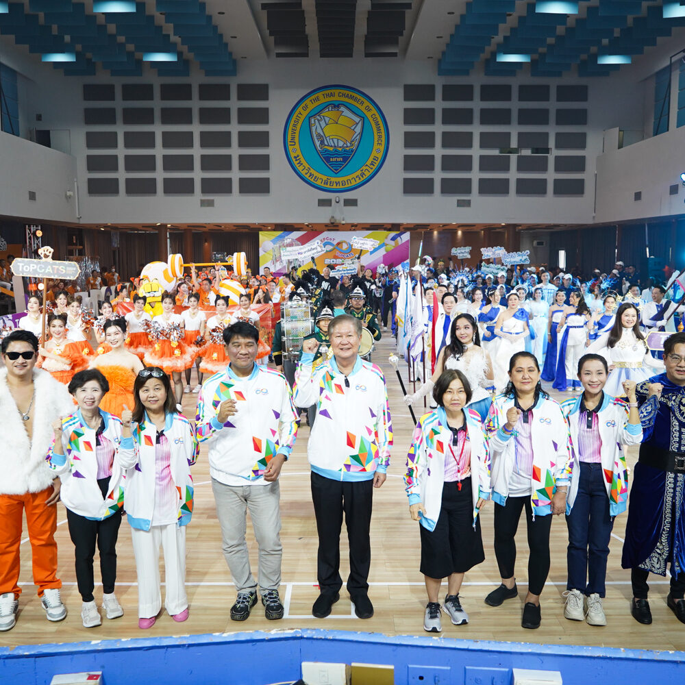 มหาวิทยาลัยหอการค้าไทย โดย ศูนย์บริการวิชาการ จัดกิจกรรมกีฬาสัมพันธ์ 2 หลักสูตร ระหว่าง หลักสูตรผู้บริหารระดับสูงด้านการค้าและพาณิชย์ รุ่นที่ 16 (TEPCoT 16) กับ หลักสูตรผู้บริหารระดับสูงด้านนวัตกรรมบริการ รุ่นที่ 5 (ToPCAT 5) เพื่อเชื่อมความสัมพันธ์ระหว่างผู้เข้าร่วมอบรมทั้ง 2 หลักสูตร ผ่านกีฬาประเภทต่างๆ ได้แก่ แข่งส่งบอลยักษ์, ตีกอลฟ์, ชักเย่อ, Striker Ball และ ฟุตบอลชาย นอกจากนี้ยังมีขบวนพาเหรด กองเชียร์และเชียร์ลีดเดอร์ โดยบรรยากาศเต็มไปด้วยสีสันและความสนุนสนานจากผู้เข้าร่วมในกิจกรรม ภายในงานได้รับเกียรติจาก คุณภูมินทร์ หะรินสุต รองประธานกรรมการหอการค้าไทยและประธานหลักสูตร TEPCoT, รองศาสตราจารย์ ดร.เสาวณีย์ ไทยรุ่งโรจน์ ผู้อำนวยการหลักสูตร ToPCATS, รองศาสตราจารย์ ดร.ธนวรรธน์ พลวิชัย อธิการบดีมหาวิทยาลัยหอการค้าไทย พร้อมด้วยคณะผู้บริหาร คณาจารย์ เจ้าหน้าที่จากศูนย์บริการวิชาการ ร่วมในกิจกรรม ณ หอประชุมมหาวิทยาลัยหอการค้าไทย เมื่อวันที่ 24 สิงหาคม 2567