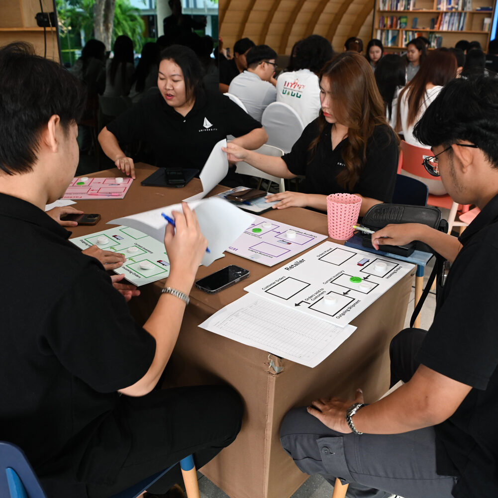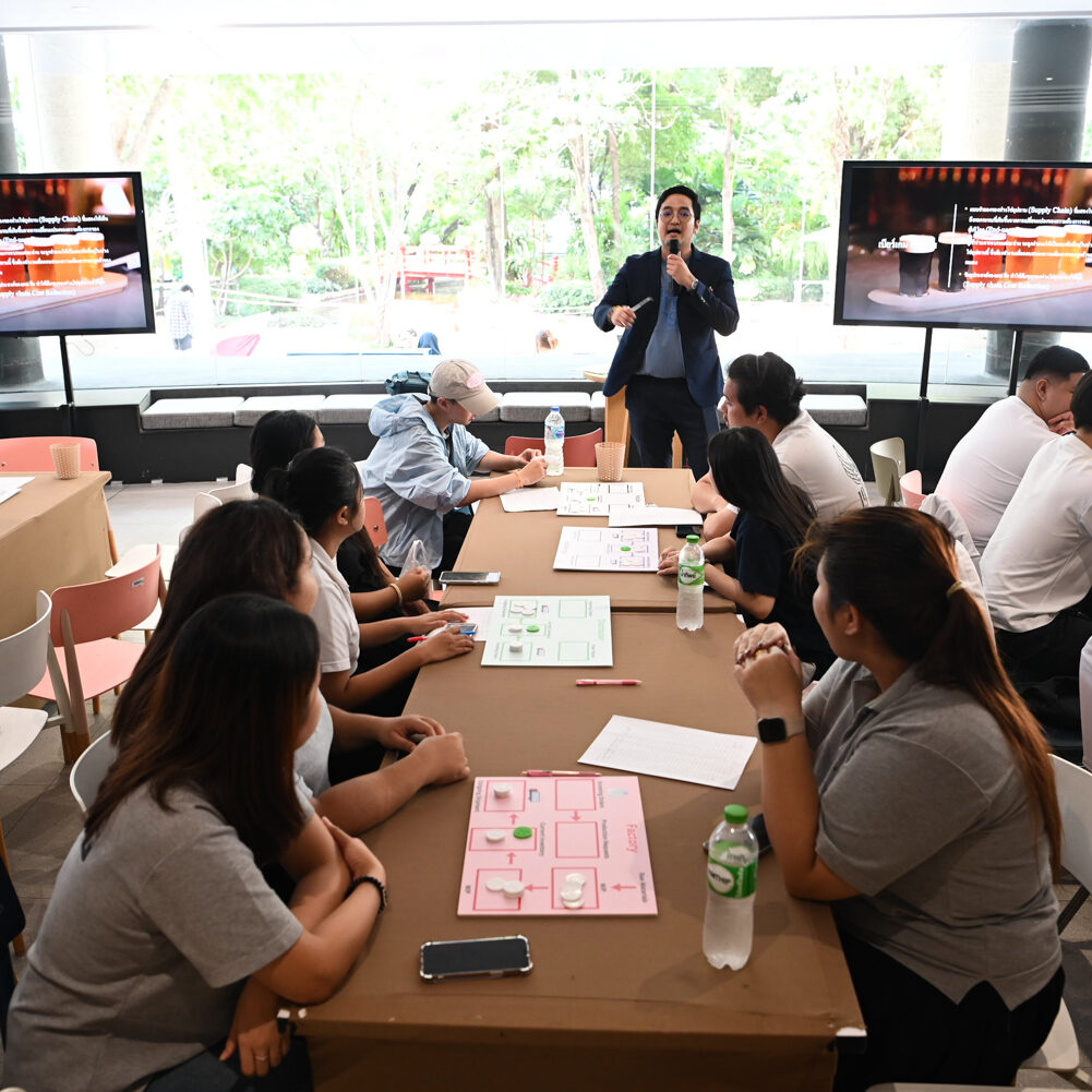 คณะบริหารธุรกิจ จัดกิจกรรมเบียร์เกมส์ ให้แก่นักศึกษา โดยเป็นบอร์ดเกมส์จำลองที่แสดงการไหลของห่วงโซอุปทาน ตั้งแต่ต้นน้ำจนถึงปลายน้ำอีกทั้งยังช่วยให้นักศึกษาที่เล่นวางแผนสินค้าคงคลังต้นทุน และการวางแผนความต้องการของลูกค้า! อีกด้วย โดยในกิจกรรมได้ อ.พอร์ช อาจารย์พุฒิพงษ์ ธนวีระกุล อาจารย์จากสาขาการจัดการโลจิสติกส์ เป็นผู้ให้คำแนะนำและอธิบายการเล่นเกมส์นี้ ณ ห้อง Blissful อาคาร 10 ชั้น 1 เมื่อวันที่ 19 มีนาคม 2568 ที่ผ่านมา