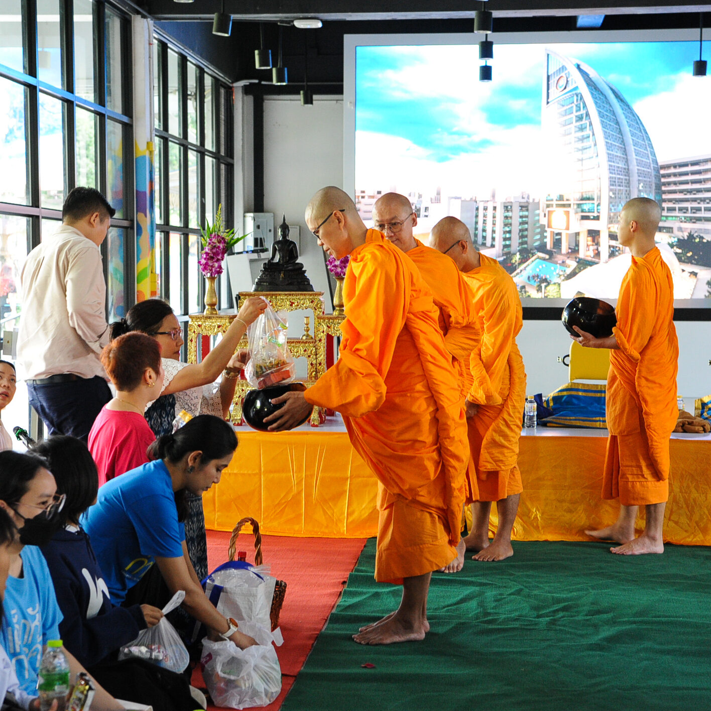 ชมรมพุทธศาสน์ สำนักพัฒนานักศึกษา มหาวิทยาลัยหอการค้าไทย จัดพิธีทำบุญตักบาตรข้าวสาร อาหารแห้ง แด่พระสงฆ์ จำนวน 5 รูป เพื่อความเป็นสิริมงคล ร่วมสืบสานขนบธรรมเนียมประเพณีอันดีงาม ถวายเป็นพุทธบูชา และส่งเสริมพุทธศาสนา โดยมีคณาจารย์ เจ้าหน้าที่ นักศึกษา และพุทธศาสนิกชนร่วมทำบุญตักบาตร ณ บริเวณโถงอเนกประสงค์ อาคาร 3 ชั้น 1 เมื่อวันที่ 21 มิถุนายน 2567