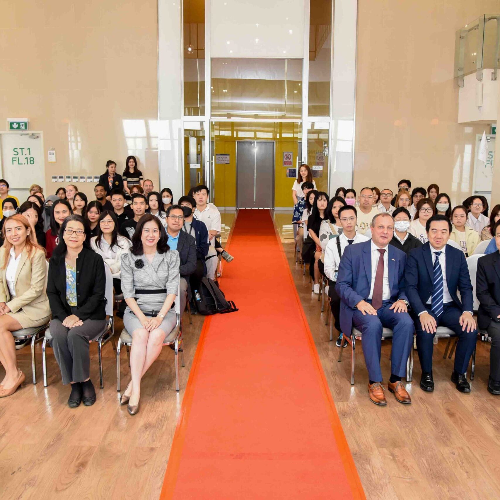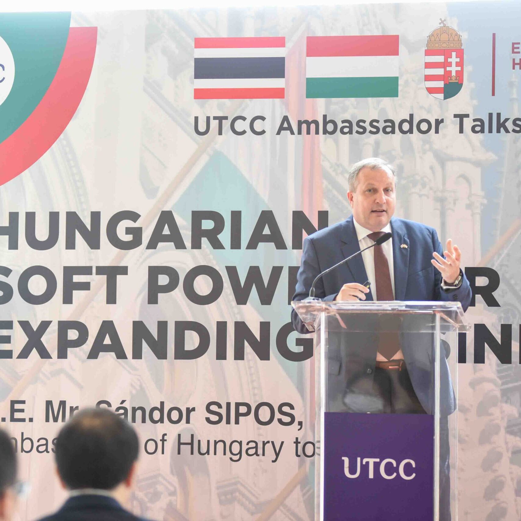 ดร.พีรพงษ์ ฟูศิริ รองอธิการบดีฝ่ายวิเทศสัมพันธ์ กล่าวเปิดงานและต้อนรับ เอกอัครราชทูต H.E. Mr. Sándor SIPOS, Ph.D. จากสถานเอกอัครราชทูตฮังการี ประจำประเทศไทย ในโอกาสมาบรรยายพิเศษในหัวข้อ Hungarian Soft Power for Expanding Business โดยมี คุณปาริชาต ธรรมจินดา หัวหน้ากองวิเทศสัมพันธ์ พร้อมด้วยคณาจารย์คณะมนุษยศาสตร์ และวิทยาลัยนานาชาติเพื่อการจัดการ รวมทั้งนักศึกษา ร่วมฟังบรรยาย ณ โถงอาคารสัญลักษณ์ อาคาร 24 ชั้น 18 มหาวิทยาลัยหอการค้าไทย เมื่อวันที่ 3 เมษายน 2567