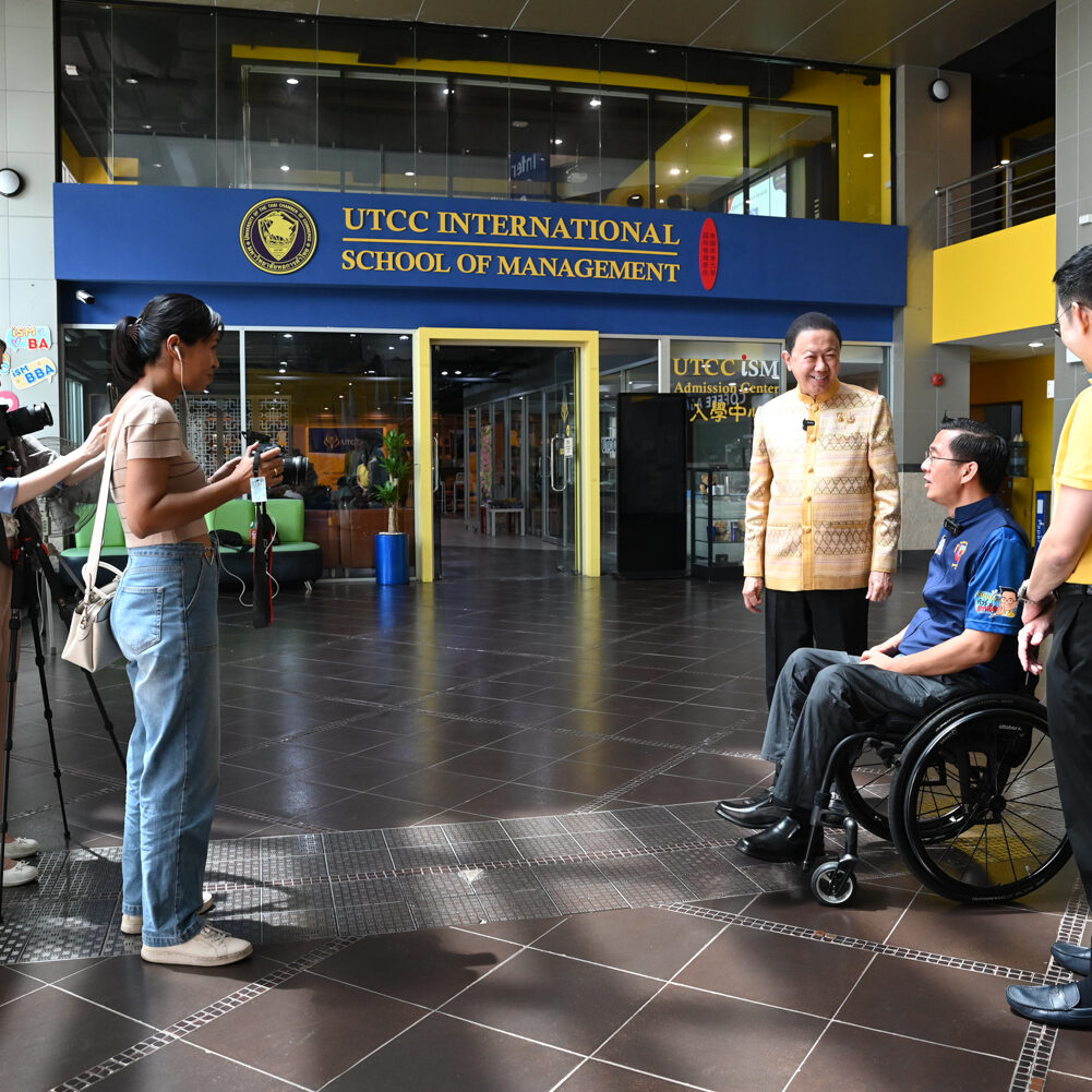 นายสนั่น อังอุบลกุล ประธานกรรมการหอการค้าไทยและสภาหอการค้าแห่งประเทศไทยและนายกสภามหาวิทยาลัยหอการค้าไทย ร่วมบันทึกเทปการสัมภาษณ์รายการ “กฤษณะทัวร์ยกล้อ” ที่ดำเนินรายการโดยคุณกฤษณะ ละไล ในโอกาสที่มาร่วมพูดคุยแนวทางการดำเนินงานพร้อมทั้งพาเยี่ยมชมสถานที่ต่างๆ ของมหาวิทยาลัยฯ โดยมี รองศาสตราจารย์ ดร.เสาวณีย์ ไทยรุ่งโรจน์ ที่ปรึกษาประจำสภามหาวิทยาลัย และประธานโครงการ Harbour.Space@UTCC และ ผู้ช่วยศาสตราจารย์ ดร.ณัฐพันธ์ บัววราภรณ์ คณบดีวิทยาลัยนานาชาติเพื่อการจัดการ (ISM) ร่วมให้การต้อนรับ เมื่อวันที่ 8 กรกฎาคม 2567 ที่ผ่านมา