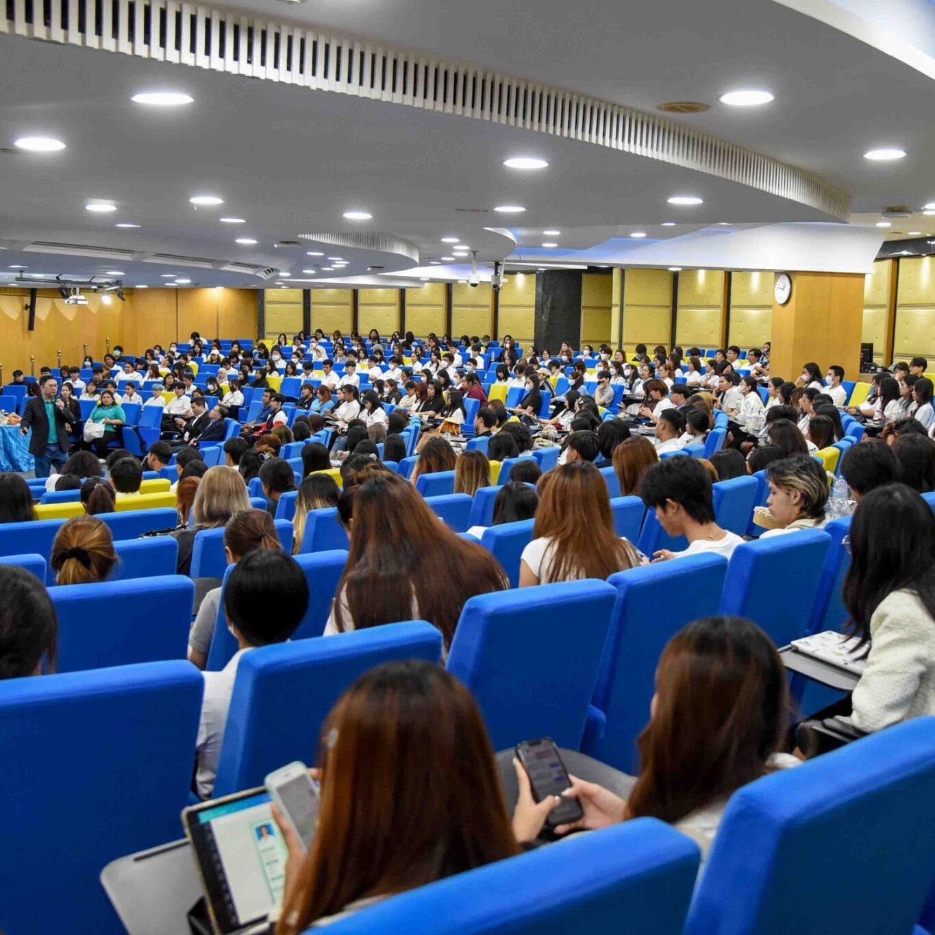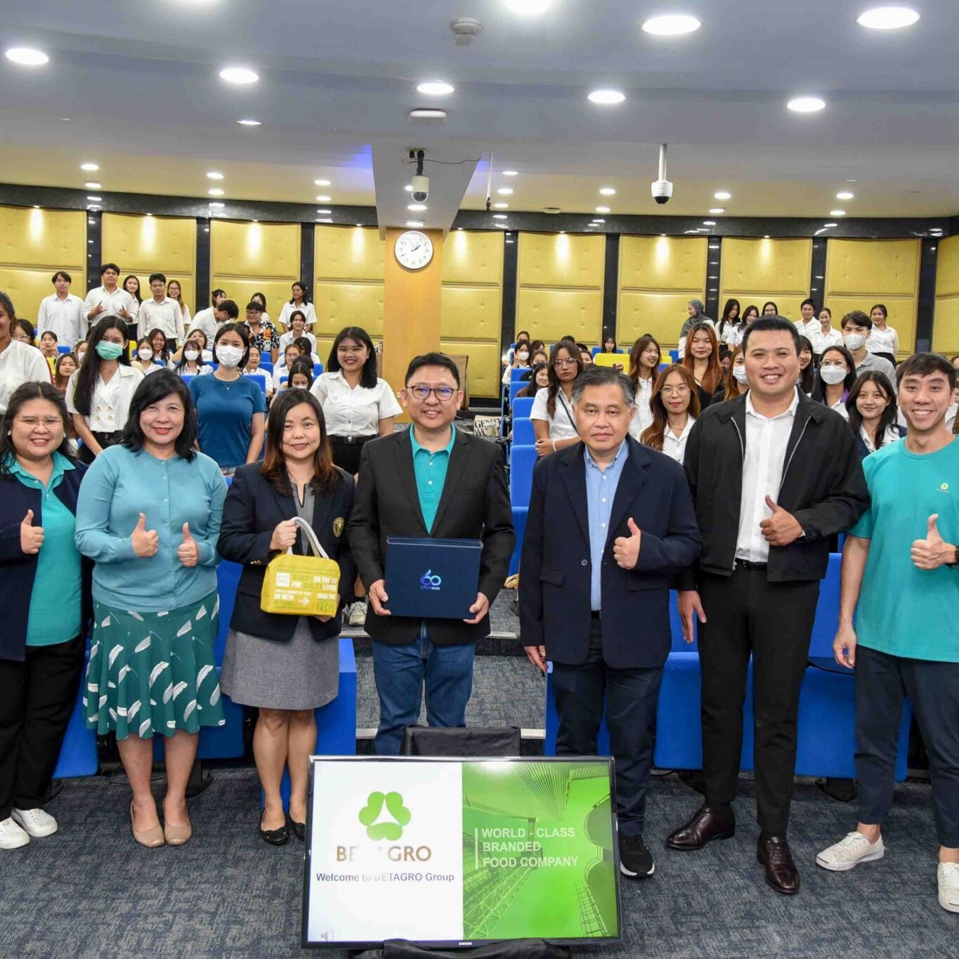 นายวีระชัย ศรีเพชระกุล ผู้ช่วยอธิการบดีฝ่ายบริหาร มหาวิทยาลัยหอการค้าไทย ให้การต้อนรับคุณสมบูรณ์ จันทร์เทพ ผู้ช่วยกรรมการผู้จัดการใหญ่ – HR Business Partner บริษัท เบทาโกร จำกัด (มหาชน) ในโอกาสมาบรรยายในกิจกรรม “เตรียมความพร้อมก่อนออกปฏิบัติงานสหกิจศึกษา” จัดโดยสำนักนวัตกรรมการศึกษา มหาวิทยาลัยหอการค้าไทย ร่วมกับ บริษัท เบทาโกร จำกัด (มหาชน) โดยมี ผศ.ชฎารัตน์ พิพัฒนนันท์ ผู้อำนวยการ สำนักนวัตกรรมการศึกษา กล่าวเปิดงาน และได้รับเกียรติจากทีมวิทยากรที่มีประสบการณ์ของบริษัท เบทาโกร จำกัด (มหาชน) มาให้ความรู้การเตรียมความพร้อมก่อนออกปฏิบัติงานสหกิจศึกษา และหลังสำเร็จการศึกษาในการสมัครงาน พร้อมทั้งให้ข้อมูลตำแหน่งงานของเครือเบทาโก ที่กำลังเปิดรับสมัคร บรรยายกาศภายในงานมีนักศึกษาชั้นปีที่ 3 และปีที่ 4 ที่จะออกปฏิบัติงานสหกิจศึกษาเข้าร่วมเป็นจำนวนมาก ณ ห้อง 10201 อาคาร 10 ชั้น 2 มหาวิทยาลัยหอการค้าไทย เมื่อวันที่ 2 กันยายน 2567