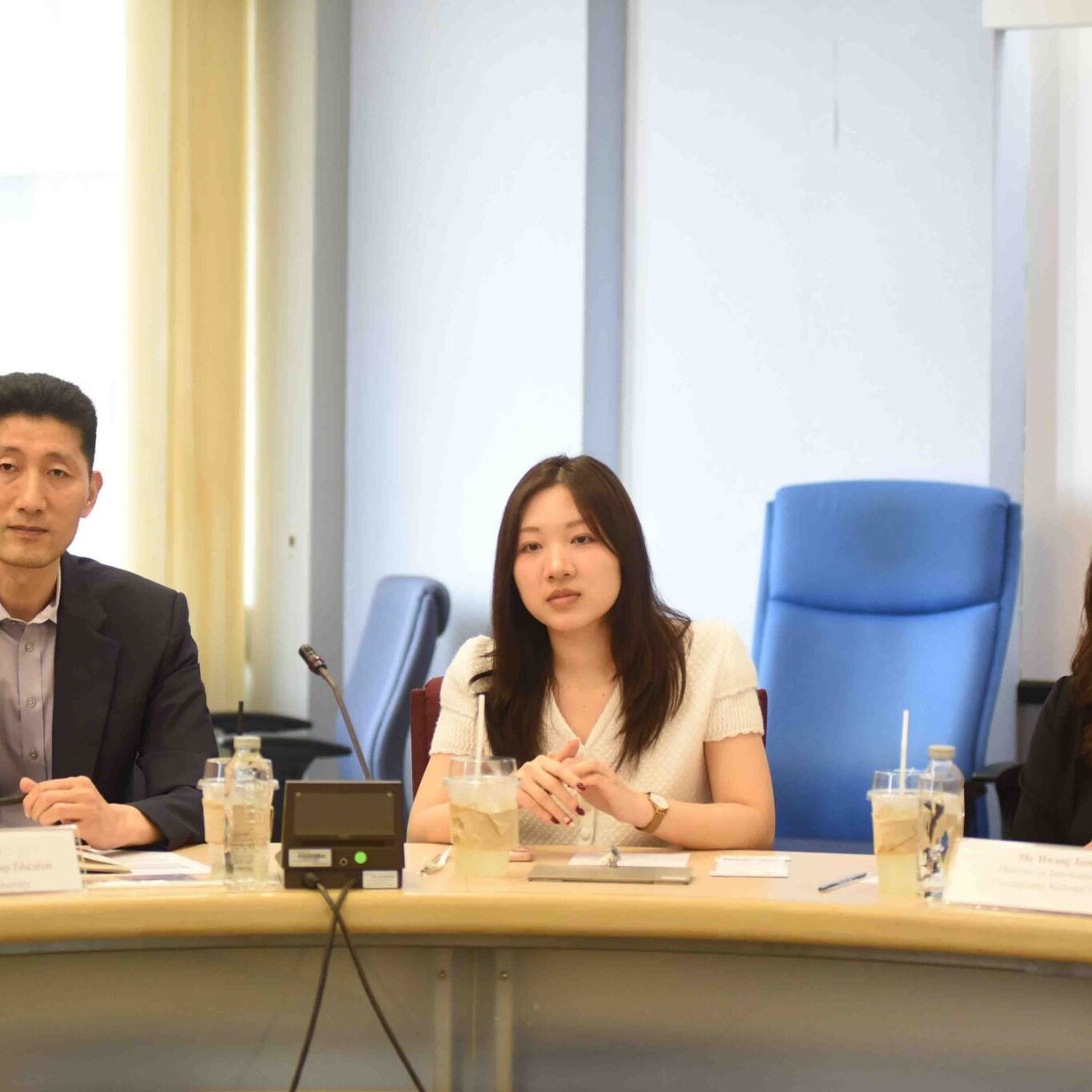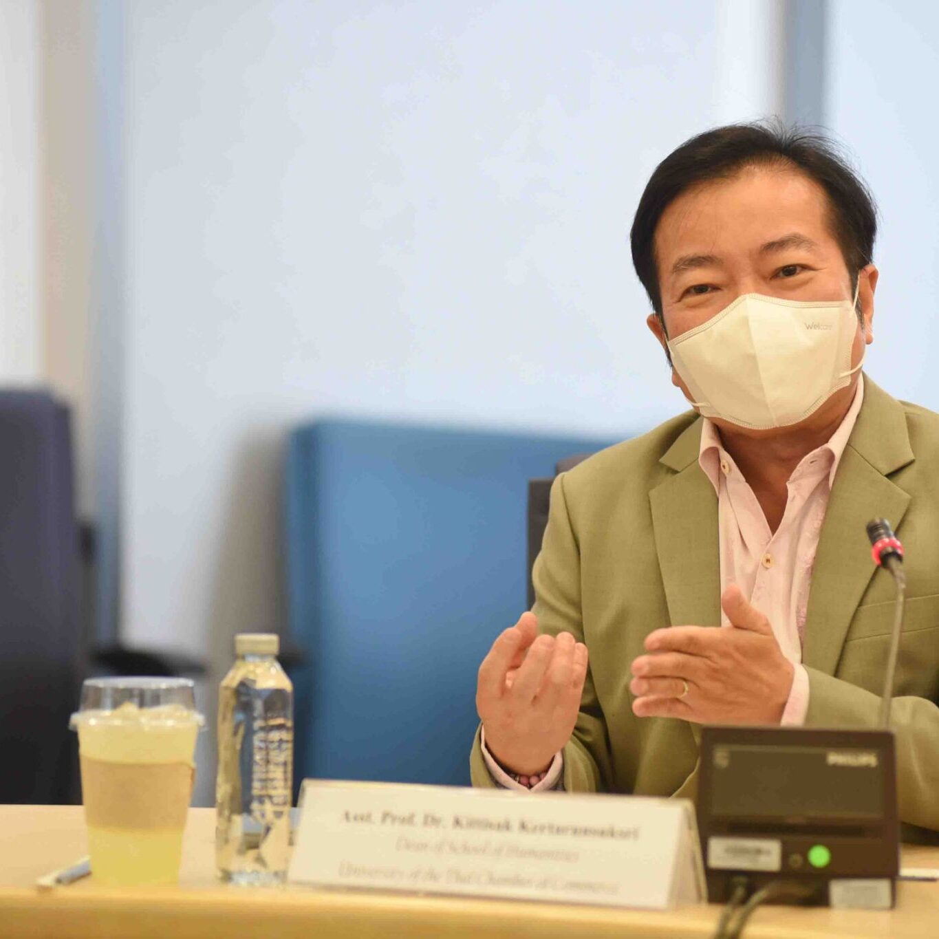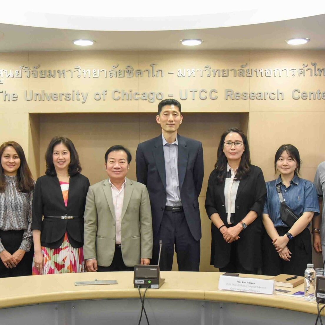 ผศ.ดร.กิตติศักดิ์ เกิดอรุณสุขศรี คณบดีคณะมนุษยศาสตร์ กล่าวต้อนรับ Mr. Yoo Haejun, Ph.D., Dean of School of Language Education และคณะจาก Gyeongsang National University ประเทศเกาหลีใต้ ในโอกาสมาเยี่ยมชมมหาวิทยาลัยหอการค้าไทย และพูดคุยหารือเกี่ยวกับโอกาสการสร้างความร่วมมือกันในอนาคต โดยเน้นด้านหลักสูตรภาษาเกาหลี และการแลกเปลี่ยนนักศึกษา โดยมี ดร.วิมลมาส หมื่นหอ หัวหน้าสาขาวิชาภาษาเกาหลี คณะมนุษยศาสตร์ และคุณปาริชาต ธรรมจินดา หัวหน้ากองวิเทศสัมพันธ์ พร้อมด้วยทีมงานจากกองวิเทศสัมพันธ์ ร่วมให้การต้อนรับ ณ ห้องประชุม อาคาร 21 ชั้น 7 เมื่อวันที่ 18 กุมภาพันธ์ 2568