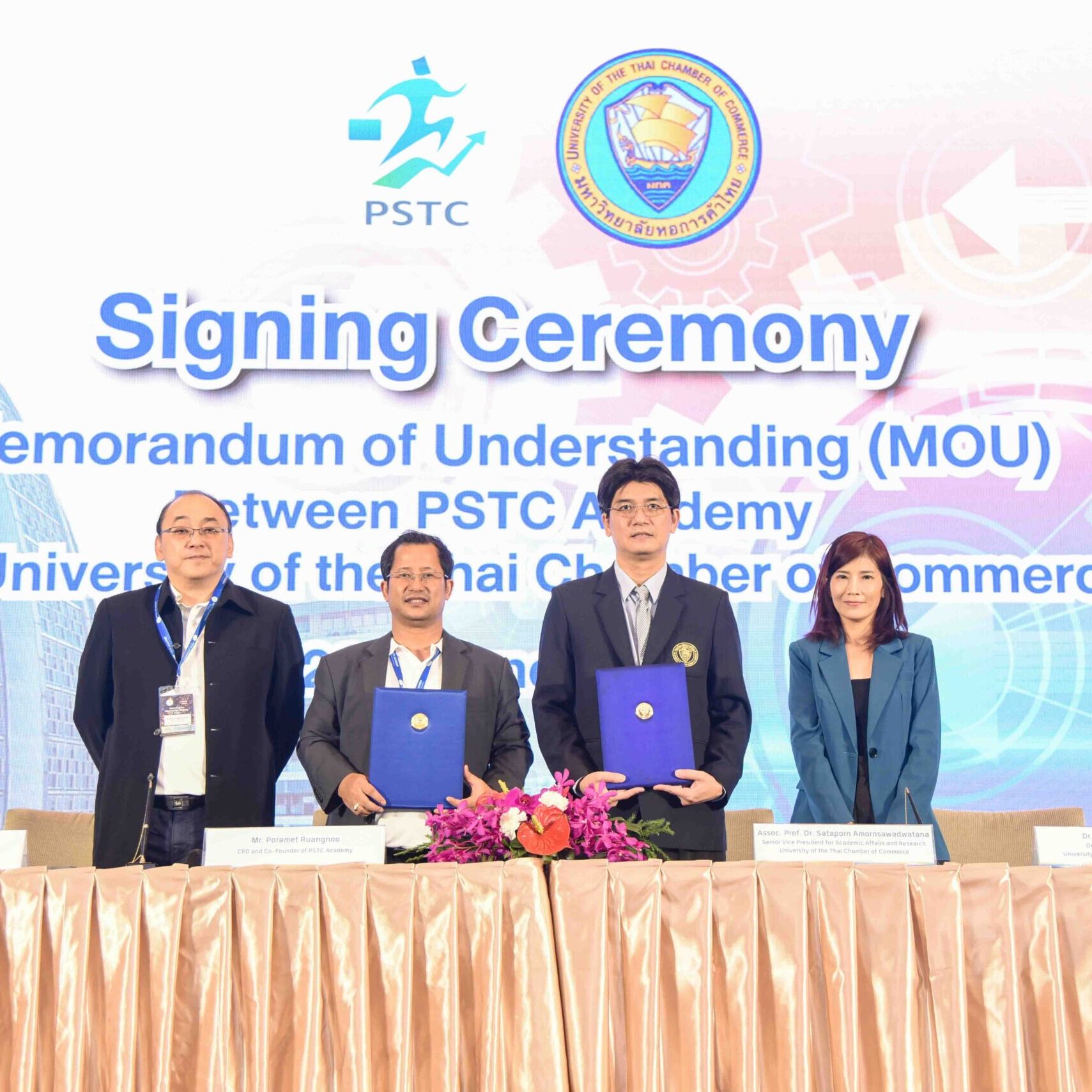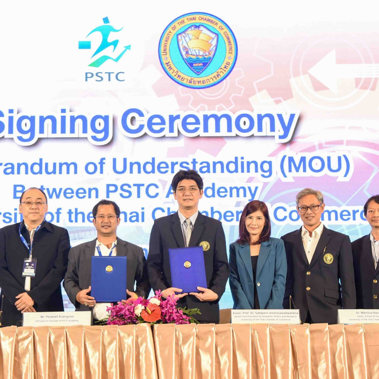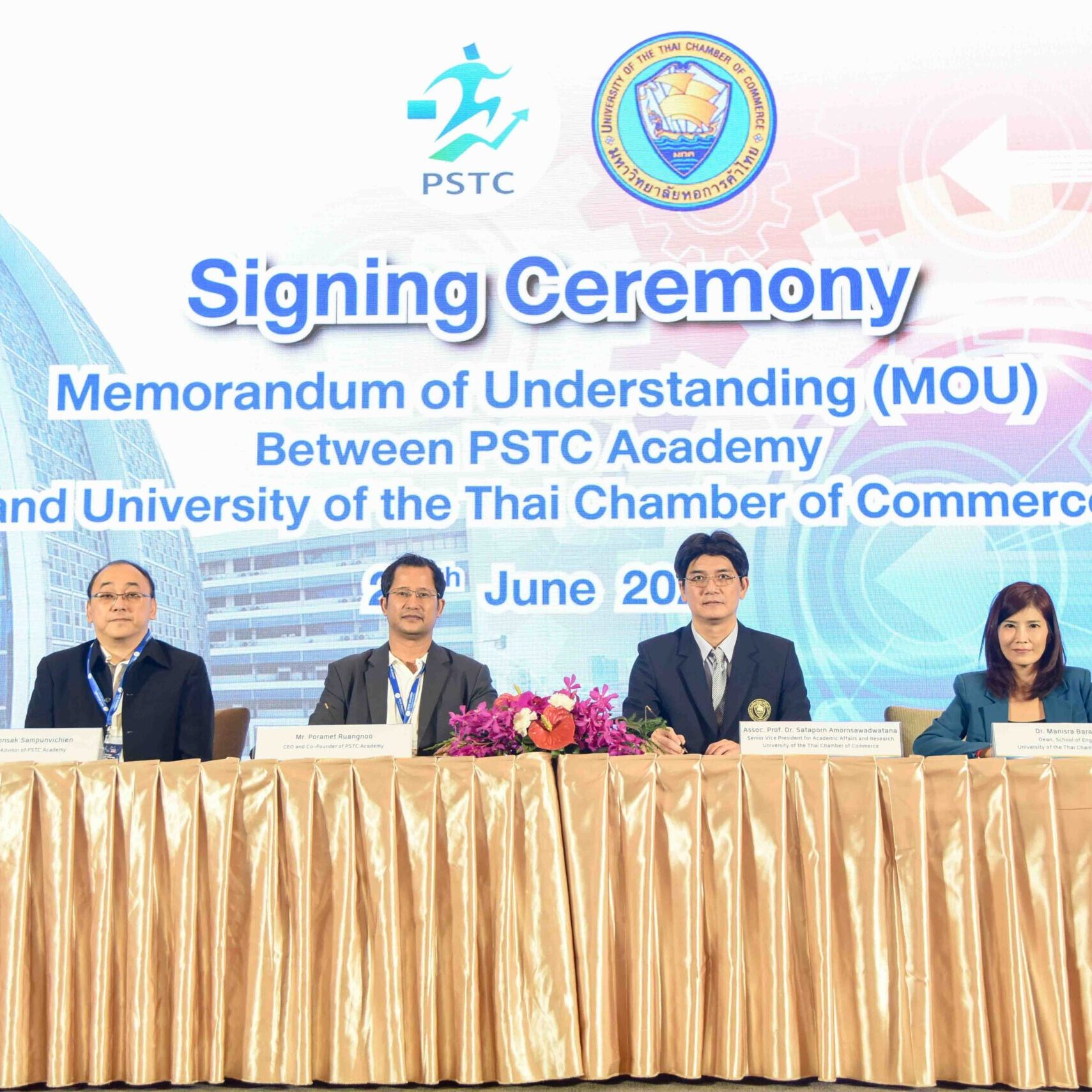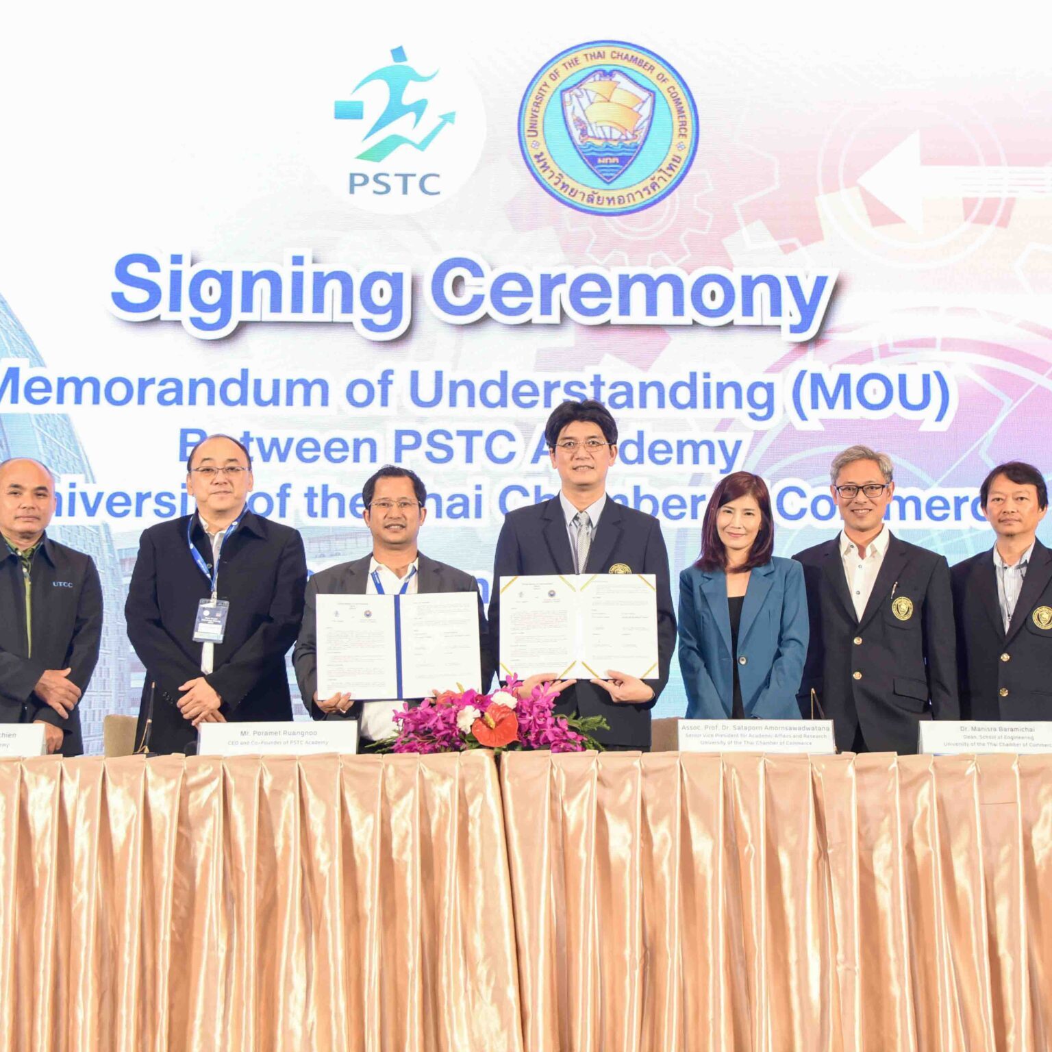มหาวิทยาลัยหอการค้าไทย โดยคณะวิศวกรรมศาสตร์ จัดพิธีลงนามความร่วมมือทางวิชาการ ระหว่างมหาวิทยาลัยหอการค้าไทย กับ PSTC Academy (Thailand) โดยมีวัตถุประสงค์เพื่อสนับสนุนแลกเปลี่ยนทางวิชาการในด้านกิจกรรมการศึกษา การวิจัย และนวัตกรรมต่างๆ รวมทั้งจะมีการจัดอบรมหลักสูตรต่างๆ ร่วมกัน