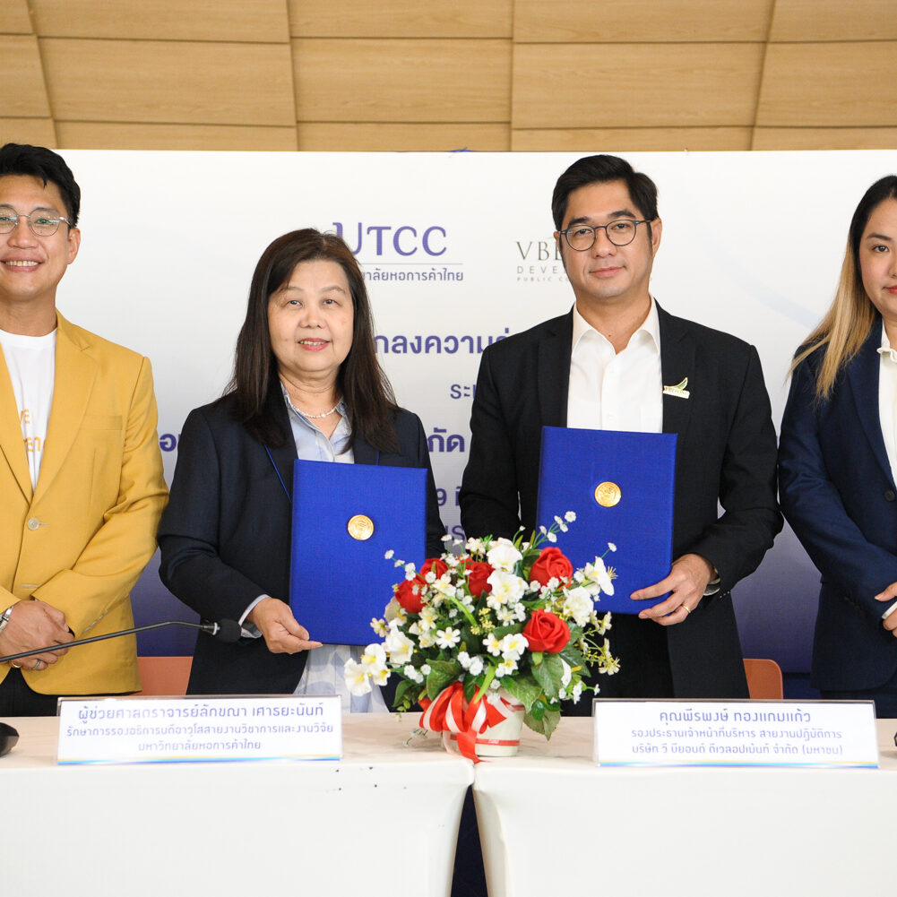 คณะการสร้างเจ้าของธุรกิจสร้างสรรค์ มหาวิทยาลัยหอการค้าไทย จัดพิธีลงนามความร่วมมือทางวิชาการ ระหว่าง มหาวิทยาลัยหอการค้าไทย กับ บริษัท วี บียอนด์ ดีเวลลอปเม้นท์ จำกัด (มหาชน) ขึ้น โดยมีวัตถุประสงค์เพื่อสนับสนุนส่งเสริมนักศึกษาคณะการสร้างเจ้าของธุรกิจสร้างสรรค์และคณะต่างๆ ในมหาวิทยาลัยฯ ได้มีโอกาสในการฝึกทักษะที่จำเป็นต่อการประกอบอาชีพจริงผ่านกิจกรรมการฝึกปฏิบัติงานและรับงานอิสระในขณะที่กำลังศึกษา รวมถึงการจัดการอบรมถ่ายทอดองค์ความรู้จากบุคลากรผู้เชี่ยวชาญ