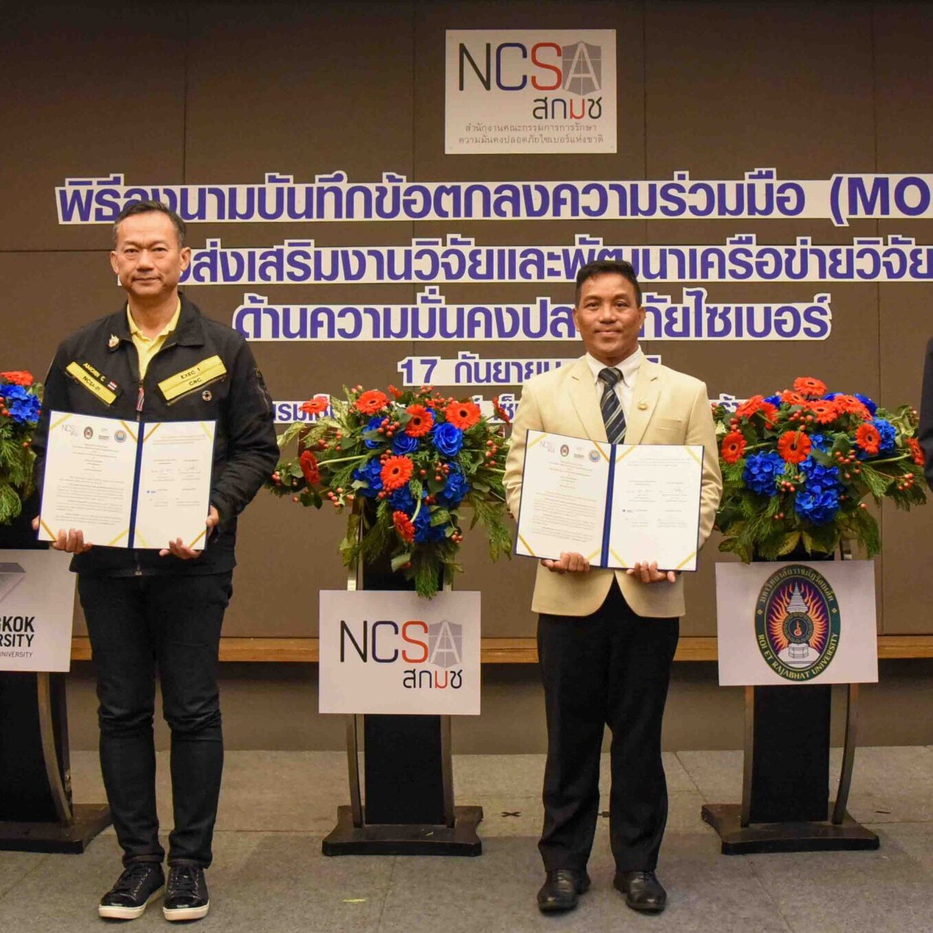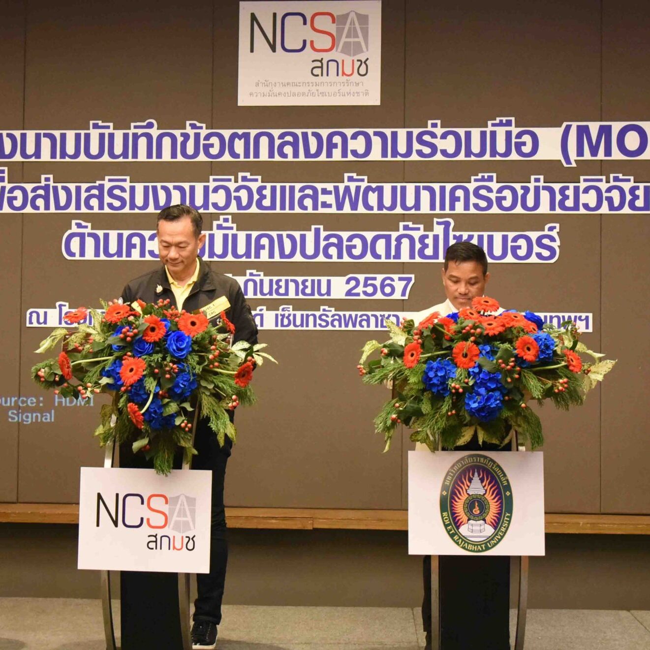คณะวิทยาศาสตร์และเทคโนโลยี มหาวิทยาลัยหอการค้าไทย ร่วมพิธีลงนามความร่วมมือ (MOU) ด้านการส่งเสริมพัฒนาทักษะการรักษาความมั่นคงปลอดภัยทางไซเบอร์ ระหว่าง สำนักงานคณะกรรมการการรักษาความมั่นคงปลอดภัยไซเบอร์แห่งชาติ (สกมช.) กับ มหาวิทยาลัยหอการค้าไทย เพื่อส่งเสริมสนับสนุน และดำเนินการในการเผยแพร่ความรู้เกี่ยวกับการรักษาความมั่นคงปลอดภัยไซเบอร์ ตลอดจนดำเนินการฝึกอบรม การบรรยาย การเสวนา การอภิปรายกลุ่ม การประกวดแข่งขัน และกิจกรรมอื่นๆ ร่วมกัน ได้รับเกียรติจาก พลอากาศตรี อมร ชมเชย เลขาธิการคณะกรรมการการรักษาความมั่นคงปลอดภัยไซเบอร์แห่งชาติ ลงนามร่วมกับ รองศาสตราจารย์ ดร.สถาพร อมรสวัสดิ์วัฒนา รองอธิการบดีอาวุโสสายงานวิชาการและงานวิจัย มหาวิทยาลัยหอการค้าไทย โดยมีผู้ช่วยศาสตราจารย์ ดร.วราภรณ์ พรหมวิกร ผู้ช่วยเลขาธิการคณะกรรมการการรักษาความมั่นคงปลอดภัยไซเบอร์แห่งชาติ ผู้ช่วยศาสตราจารย์ ดร.อิทธิพงษ์ เขมะเพชร คณบดีคณะวิทยาศาสตร์และเทคโนโลยี ร่วมลงนามเป็นพยาน ณ โรงแรมเซ็นทาราแกรนด์ เซ็นทรัลพลาซ่า ลาดพร้าว กรุงเทพฯ เมื่อวันที่ 17 กันยายน 2567