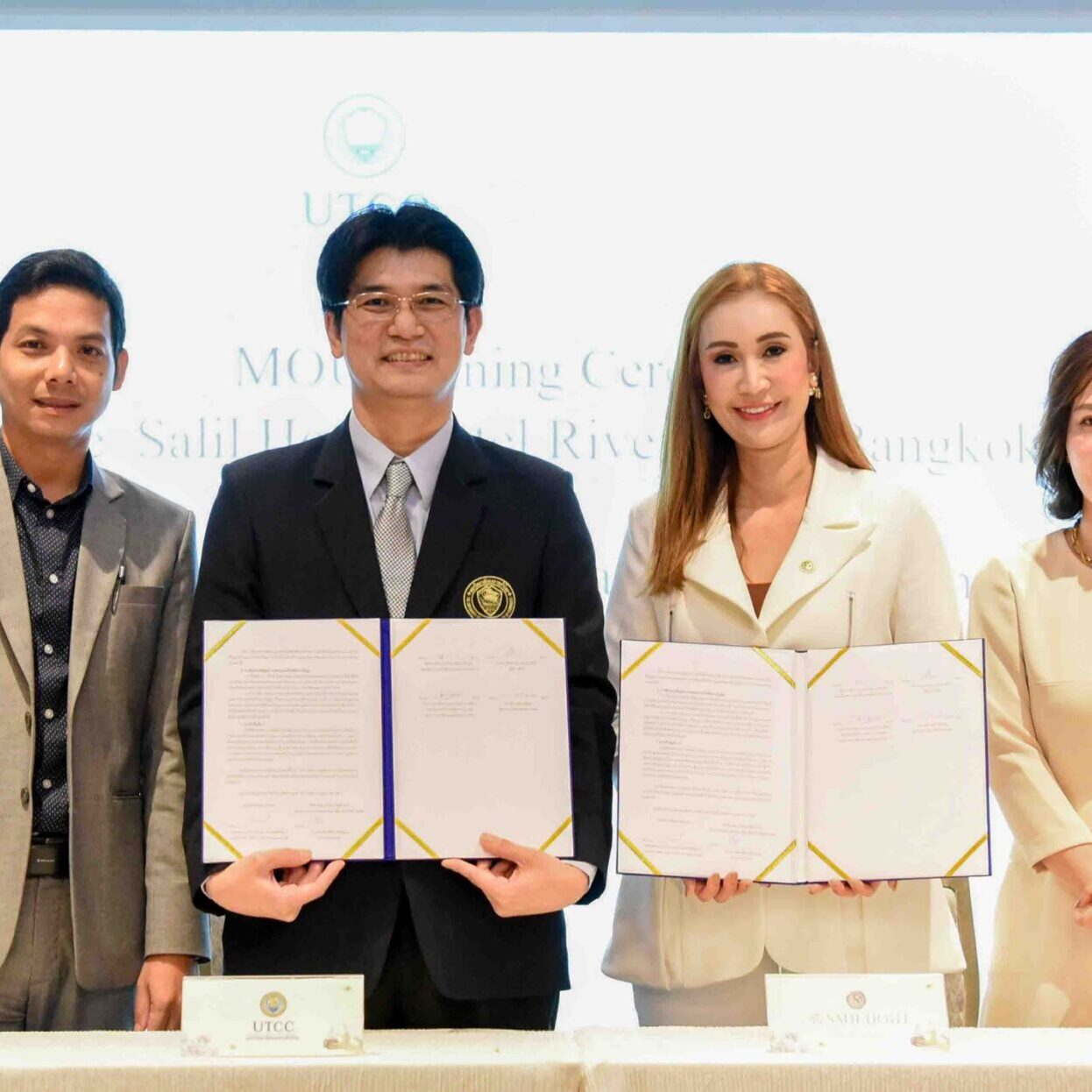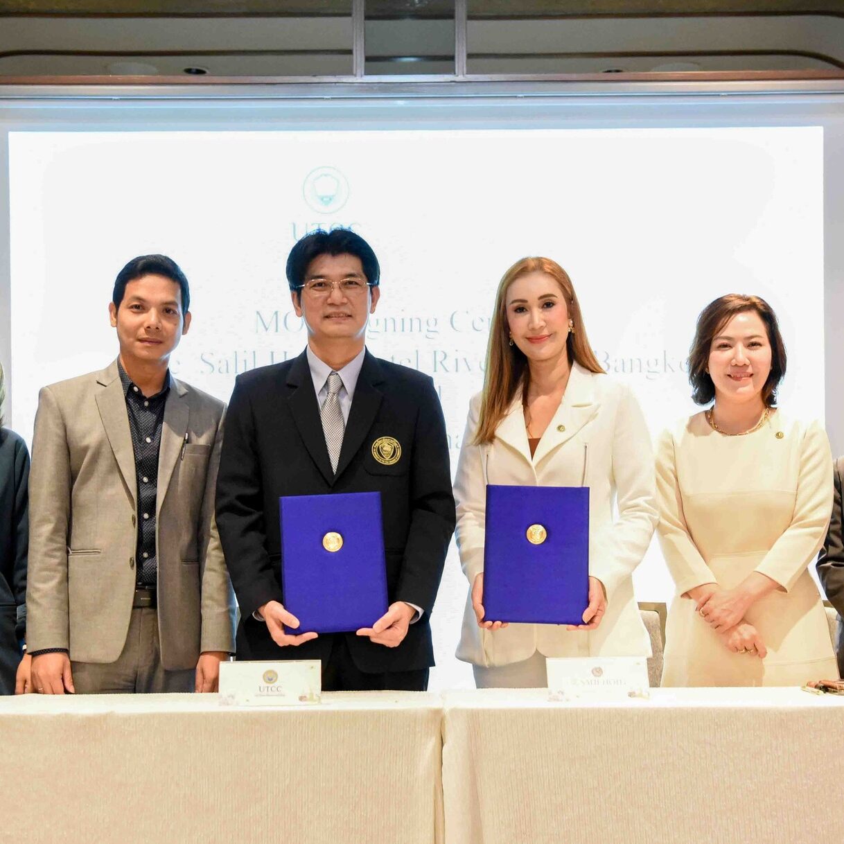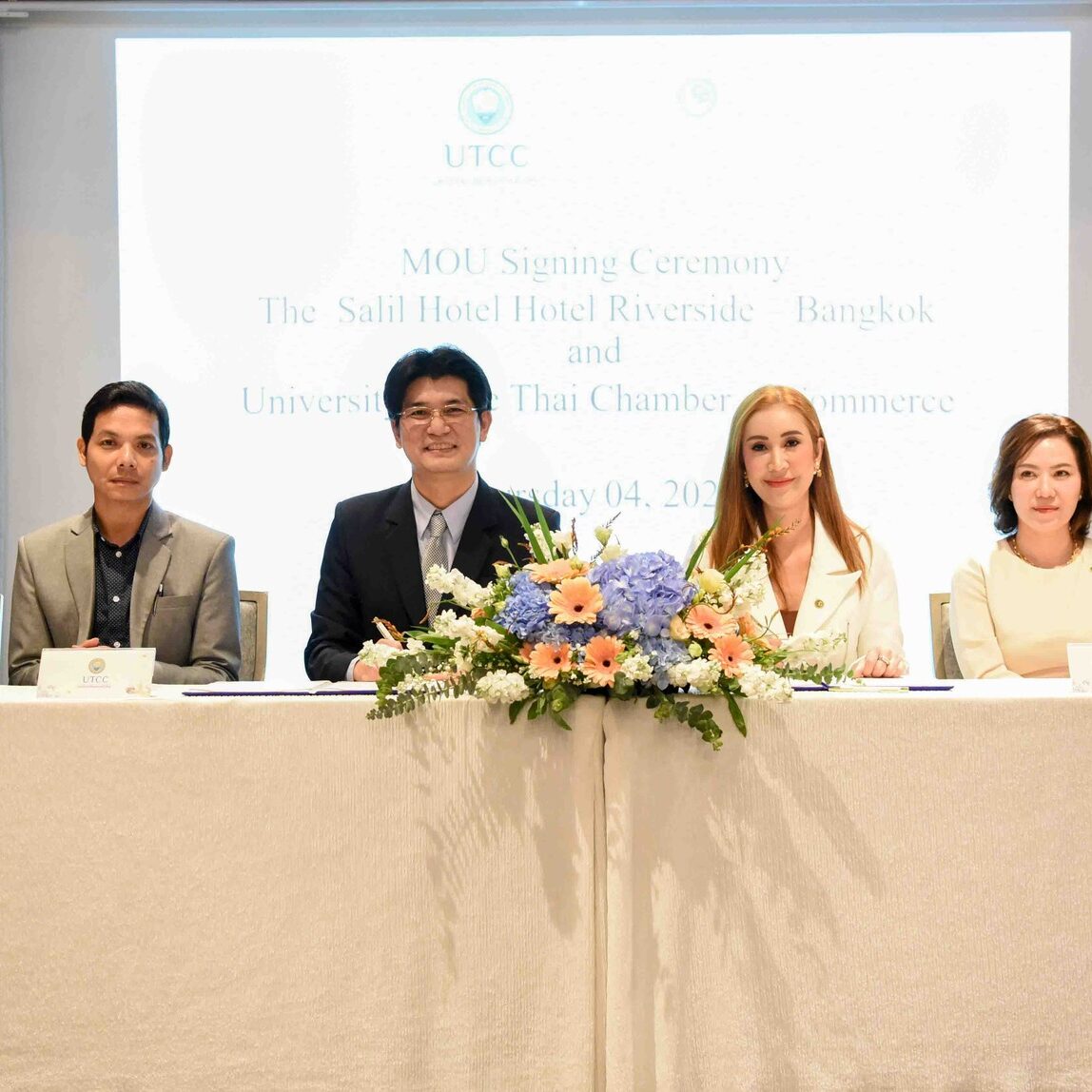 มหาวิทยาลัยหอการค้าไทย โดย คณะการท่องเที่ยวและอุตสาหกรรมบริการ จัดพิธีลงนามความร่วมมือ (MOU) ระหว่าง มหาวิทยาลัยหอการค้าไทย กับ บริษัท เดอะ สลิล ริเวอร์ไซด์ จำกัด เพื่อบูรณาการความร่วมมือระหว่างมหาวิทยาลัยหอการค้าไทยกับบริษัทในการผลิต ส่งเสริม และพัฒนาบุคลากรที่มีคุณภาพ รวมถึงให้ความรู้ความเข้าใจเกี่ยวกับงานทางด้านการศึกษา และด้านอื่นๆ ที่เกี่ยวข้อง ซึ่งสอดคล้องกับความต้องการของทั้งสองสถาบัน ได้รับเกียรติจาก รองศาสตราจารย์ ดร.สถาพร อมรสวัสดิ์วัฒนา รองอธิการบดีอาวุโสสายงานวิชาการและงานวิจัย ลงนามร่วมกับ คุณเพียงเดือน คล้อยอรุณ รองประธานบริหาร โรงแรม เดอะ สลิล ริเวอร์ไซด์ กรุงเทพฯ โดยมีผู้ช่วยศาสตราจารย์ ดร.ยงยุทธ แก้วอุดม คณบดีคณะการท่องเที่ยวและอุตสาหกรรมบริการ อาจารย์ ดร.ศรินยา ละอองอินทร์ ทยานศิลป์ หัวหน้าสาขาวิชาการจัดการการโรงแรม นางสาวณิรินทร์ญา พรจริยาศิลป์ ผู้จัดการทั่วไป นางชุติกาญจน์ ศรีชนะ ผู้อำนวยการฝ่ายทรัพยากรบุคคล ร่วมลงนามเป็นพยาน พร้อมด้วยผู้บริหารของทั้ง 2 สถาบันร่วมในพิธี ณ โรงแรม เดอะ สลิล ริเวอร์ไซด์ กรุงเทพฯ เมื่อวันที่ 4 กรกฎาคม 2567