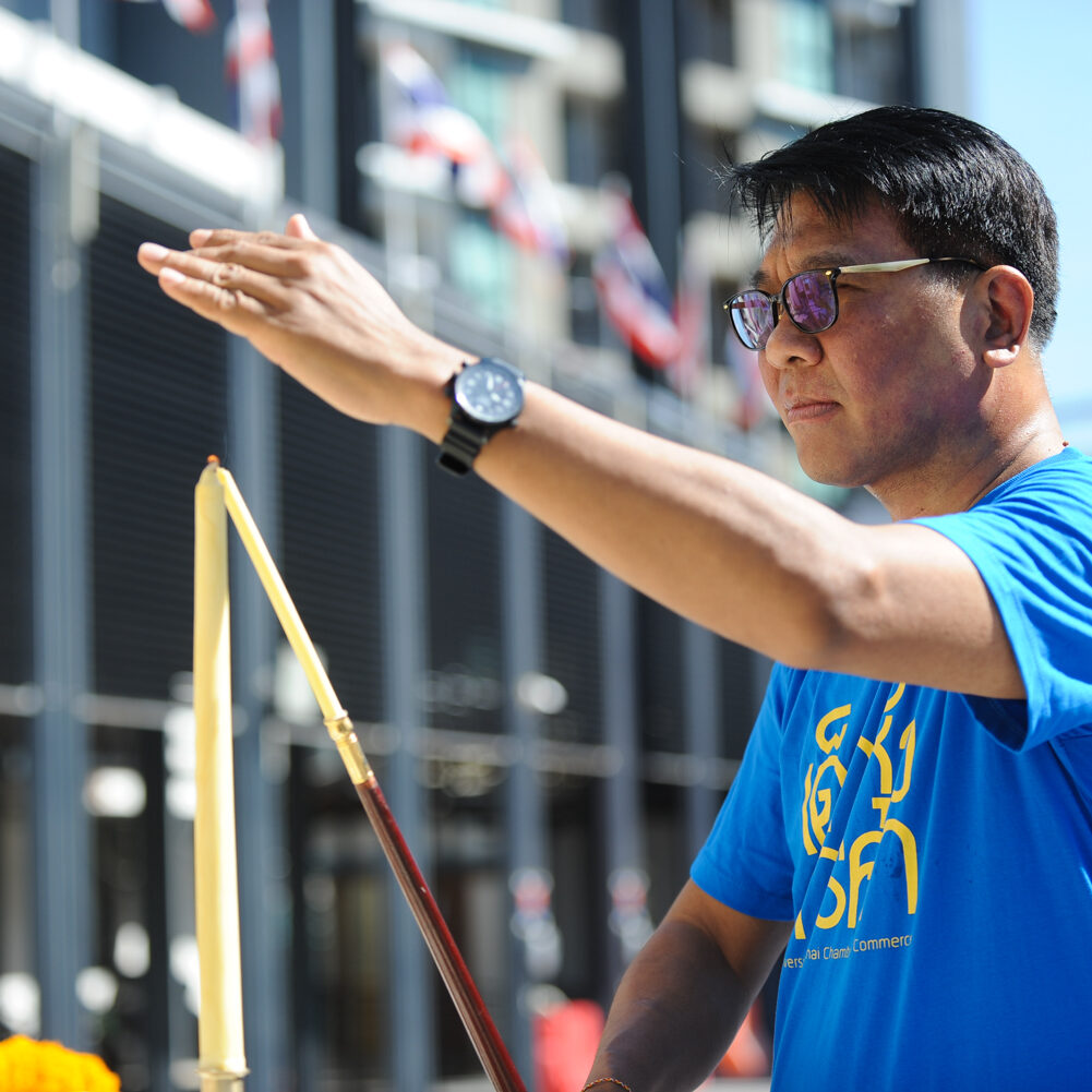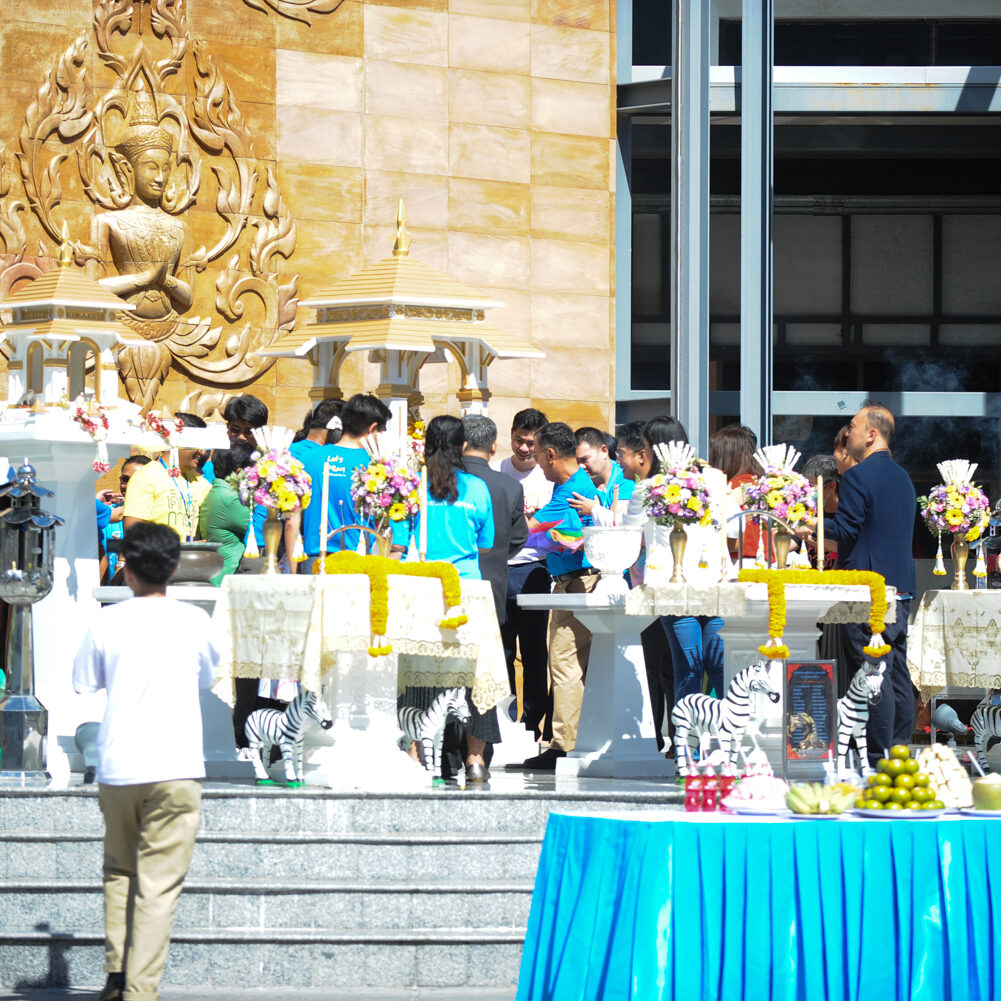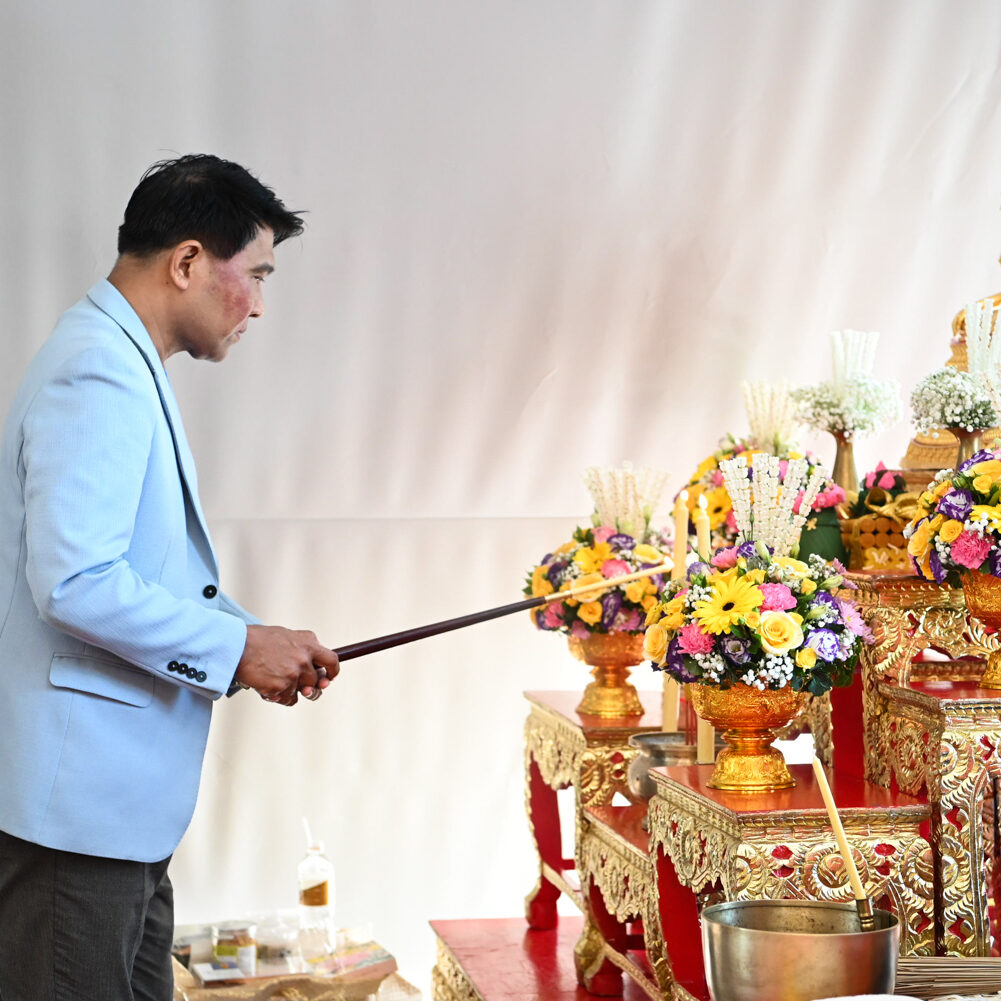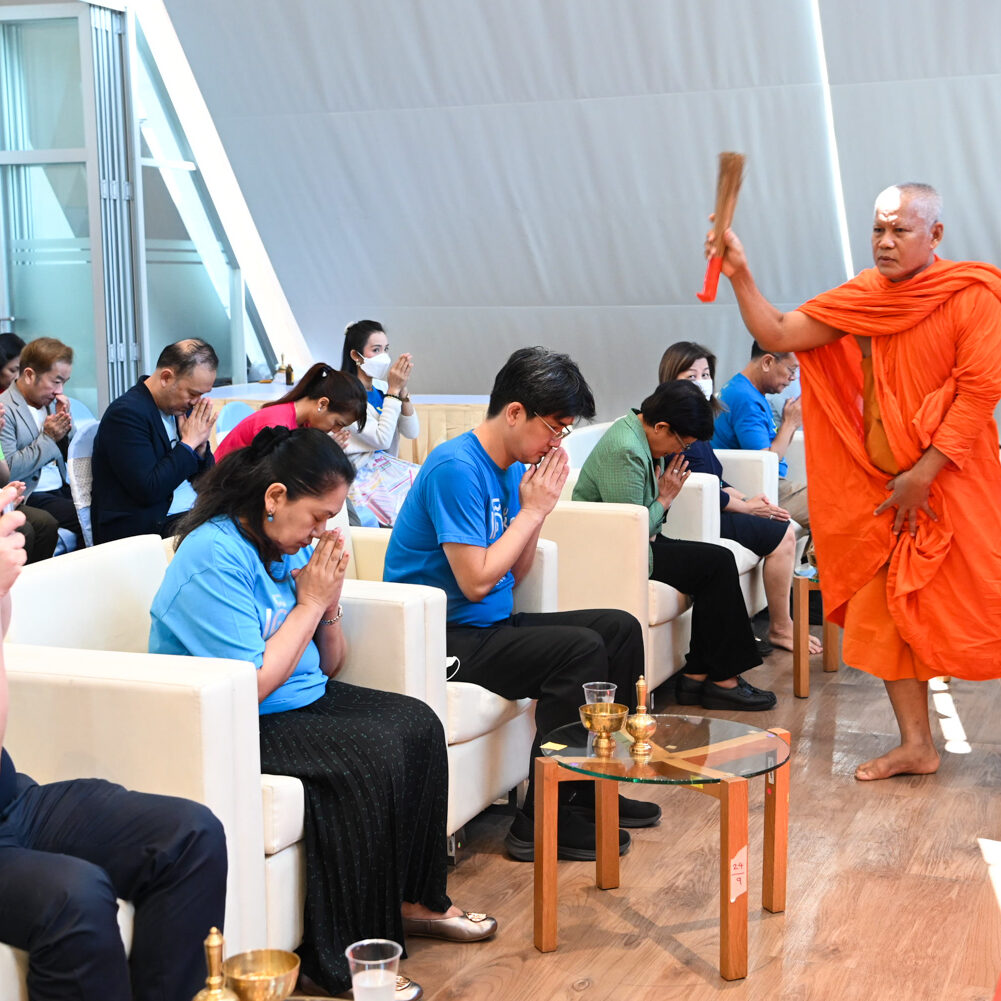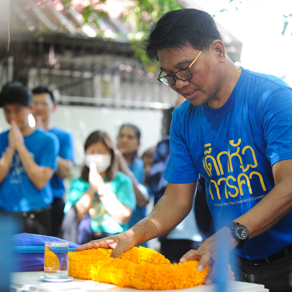 รองศาสตราจารย์ ดร.ธนวรรธน์ พลวิชัย อธิการบดีมหาวิทยาลัยหอการค้าไทย นำคณะผู้บริหาร อาจารย์ เจ้าหน้าที่และผู้แทนนักศึกษา เข้าสักการะสิ่งศักดิ์สิทธิ์ของมหาวิทยาลัยฯ ในโอกาสครบรอบ 61 ปี มหาวิทยาลัยหอการค้าไทยและพิธีเจริญพระพุทธมนต์จากคณะสงฆ์ จำนวน 9 รูป จากวัดพรหมวงศาราม ( วัดหลวงพ่อเณร ) เพื่อเป็นสิริมงคล แก่ผู้เข้าร่วมในงาน ณ โถงอเนกประสงค์ อาคาร 24 (อาคารสัญลักษณ์) ชั้น 18 มหาวิทยาลัยหอการค้าไทย เมื่อวันที่ 20 มิถุนายน 2567