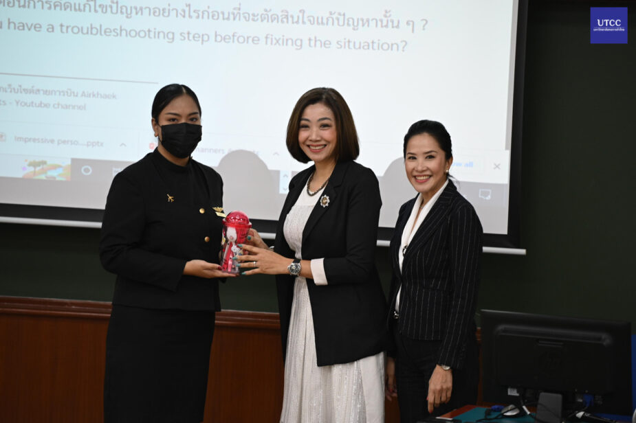 การบินหอการค้า ร่วมมือกับ สายการบิน P80 Air ส่งวิทยากรระดับ First Class อดีต AIR PURSER หัวหน้าพนักงานต้อนรับบนเครื่องบินบริษัทการบินไทย มาให้ความรู้กับ #เด็กหัวการค้า