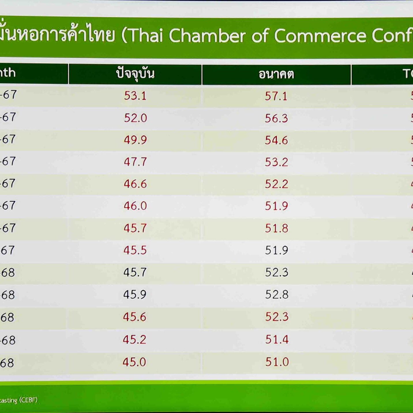 ส่วนดัชนีความเชื่อมั่นหอการค้าไทยในเดือนพฤษภาคม 2568 ปรับตัวลดลงเป็นเดือนแรกโดยอยู่ที่ระดับ 48.0 ยังคงอยู่ในระดับต่ำกว่าระดับค่ากลางที่ 50 ต่อเนื่อง โดยเป็นการปรับตัวลดลงในทุกภูมิภาค โดยมีปัจจัยลบมาจากภาคธุรกิจกังวลต่อความไม่แน่นอนของเศรษฐกิจโลก โดยเฉพาะการดำเนินนโยบายของประเทศเศรษฐกิจ สงครามการค้าระหว่างประเทศ ที่มีแนวโน้มขยายตัวในทุกภูมิภาคของโลก เศรษฐกิจยังฟื้นตัวช้า เสถียรภาพทางเศรษฐกิจทั้งในและต่างประเทศยังเผชิญความเสี่ยง จากมาตรการกีดกันการค้าของประเทศมหาอำนาจ เมื่อวันที่ 12 มิถุนายน 2568 ณ ห้องประชุมสภามหาวิทยาลัยหอการค้าไทย
