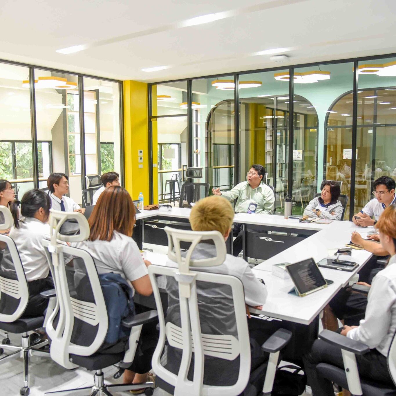 นอกจากนี้ยังได้รับเกียรติจาก ดร.มานะ ตรีรยาภิวัฒน์ รองอธิการบดีฝ่ายกิจการนักศึกษา บรรยายสรุปภาพรวมเพื่อเป็นแนวทางสำหรับการเป็นผู้นำนักศึกษาในยุค Ai ซึ่งมีอาจารย์เสาวลักษณ์ สุดประเสริฐ ผู้ช่วยอธิการบดีฝ่ายกิจการนักศึกษา รองคณบดีฝ่ายกิจการนักศึกษาแต่ละคณะ บุคลากรจากฝ่ายกิจการนักศึกษา และผู้นำนักศึกษาแต่ละคณะเข้าร่วมโครงการด้วย ณ ห้องไทรทอง อาคาร 3 ชั้น 4 เมื่อวันที่ 19 มิถุนายน 2568