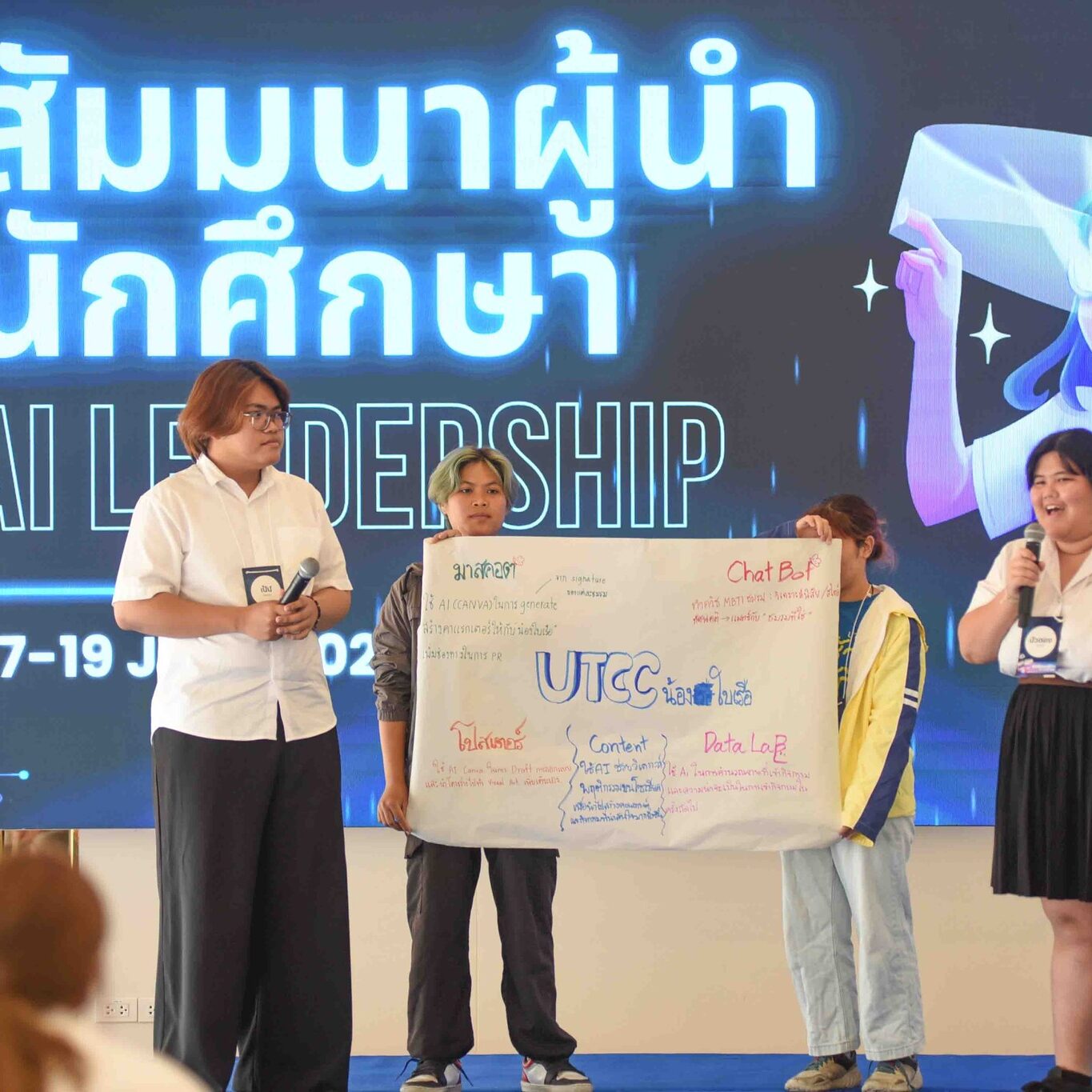 กิจกรรมภายในโครงการ มีการบรรยายในหัวข้อ “Ai University” ภาพรวมและแนวนโยบายของมหาวิทยาลัยที่ขับเคลื่อนด้วย Ai โดยผู้ช่วยศาสตราจารย์ ดร.ชัชชัย หวังวิวัฒนา ผู้ช่วยอธิการบดีฝ่ายเทคโนโลยีสารสนเทศ และกิจกรรมแลกเปลี่ยนระดมความคิดในเรื่อง “การใช้ Ai ทำให้นักศึกษาเข้าร่วมกิจกรรมมากขึ้นอย่างไร” รวมถึงการเปิดตัวผู้นำนักศึกษาแต่ละสังกัด