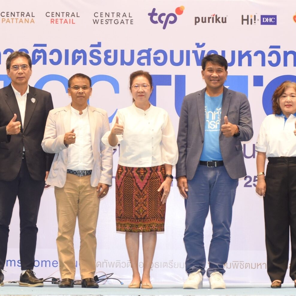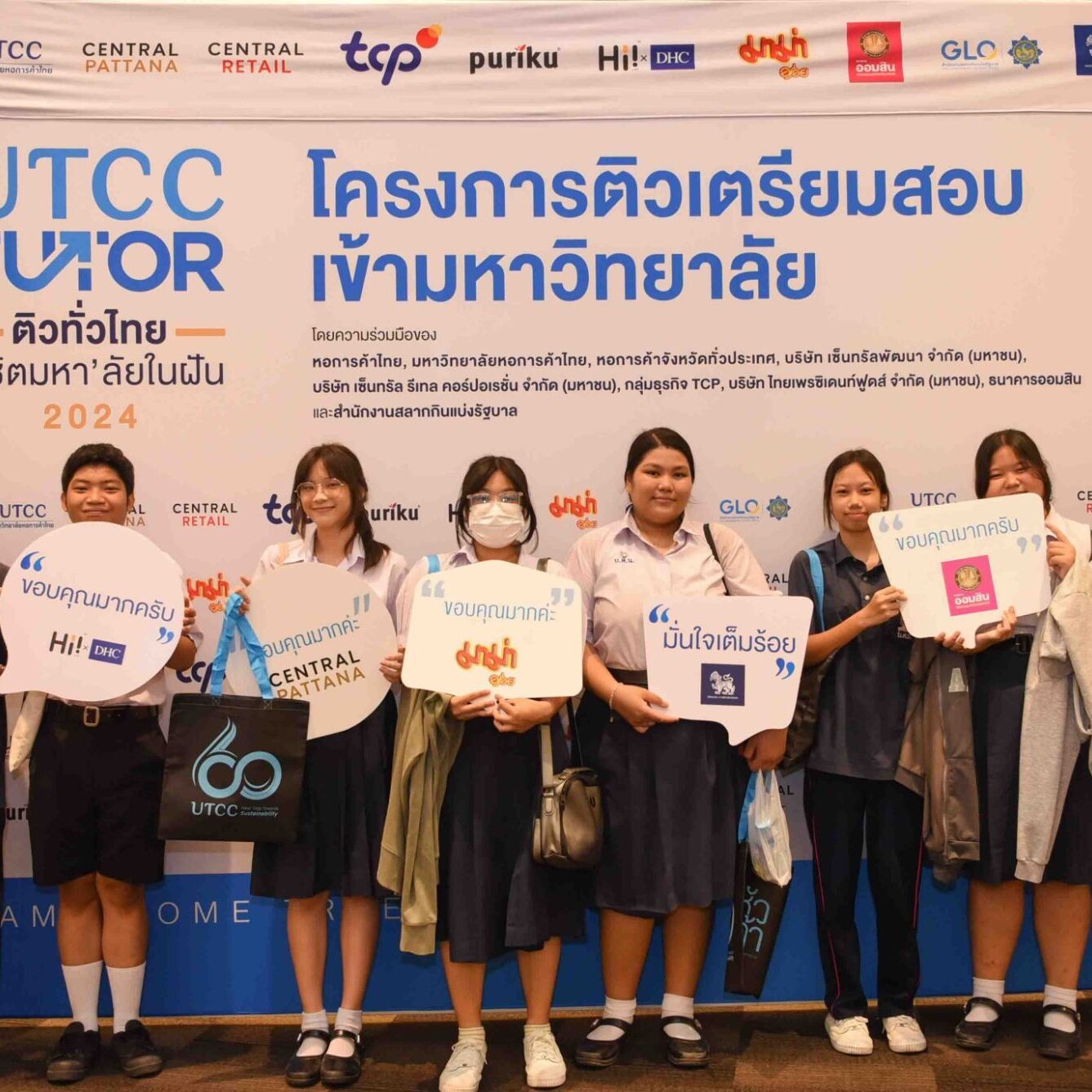 คุณระวีพรรณ แก้วเพียงเพ็ญ รองผู้ว่าราชการจังหวัดนนทบุรี ให้เกียรติกล่าวเปิดงานโครงการ UTCC TUTOR 2024 “ติวทั่วไทย พิชิตมหา’ลัยในฝัน” พร้อมด้วยรองศาสตราจารย์ ดร.ธนวรรธน์ พลวิชัย อธิการบดีมหาวิทยาลัยหอการค้าไทย กล่าวถึงวัตถุประสงค์โครงการ คุณอดุลย์ ชุรักษ์ ผู้จัดการอาคารและสถานที่ ศูนย์การค้า เซ็นทรัล เวสต์เกต กล่าวต้อนรับ คุณณารินทร์ เทศขยัน ประธาน YEC จังหวัดนนทบุรี กล่าวถึงความร่วมมือ โดยโครงการดังกล่าวเป็นความร่วมมือระหว่างหอการค้าไทย, หอการค้าจังหวัดนนทบุรี, YEC จังหวัดนนทบุรี, มหาวิทยาลัยหอการค้าไทย และองค์กรชั้นนำ ได้แก่ บริษัท เซ็นทรัลพัฒนา จำกัด (มหาชน), บริษัท เซ็นทรัล รีเทล คอร์ปอเรชั่น จำกัด (มหาชน), บริษัท ไทยเพรซิเดนท์ฟูดส์ จำกัด (มหาชน), กลุ่มธุรกิจ TCP, ธนาคารออมสิน, สำนักงานสลากกินแบ่งรัฐบาล, บริษัท สิงห์ คอร์เปอเรชั่น จำกัด และพันธมิตรเครือข่ายนักธุรกิจหอการค้าทั่วประเทศ