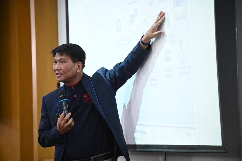ช่วงที่ 1 เป็นการบรรยายในหัวข้อเรื่อง Future Thailand Outlook โดย รศ.ดร.ธรวรรธน์ พลวิชัย อธิการบดีมหาวิทยาลัยหอการค้าไทย เป็นผู้บรรยายให้ความรู้ด้านธุรกิจ เศรษฐกิจและการเติบโตของภาคธุรกิจ รวมถึงแนะนำแนวทางในการปรับตัวสู่ Business transformation