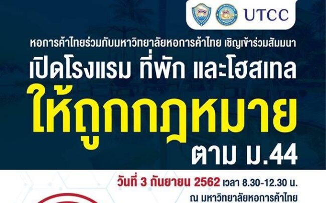 ม.หอการค้าไทย ร่วมกับ หอการค้าไทย เชิญชวนอบรมการโรงแรมที่พักโฮสเทล ให้ถูกกฏหมาย