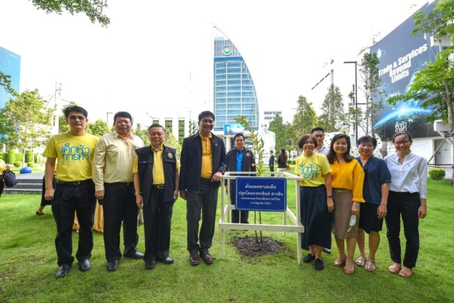 คุณกลินท์ สารสิน นายกสภามหาวิทยาลัยหอการค้าไทย ร่วมกับตัวแทนผู้บริหารและสมาชิกหอการค้าไทย และผู้บริหารมหาวิทยาลัยฯ ร่วมปลูกต้นแมคคาเดเมีย