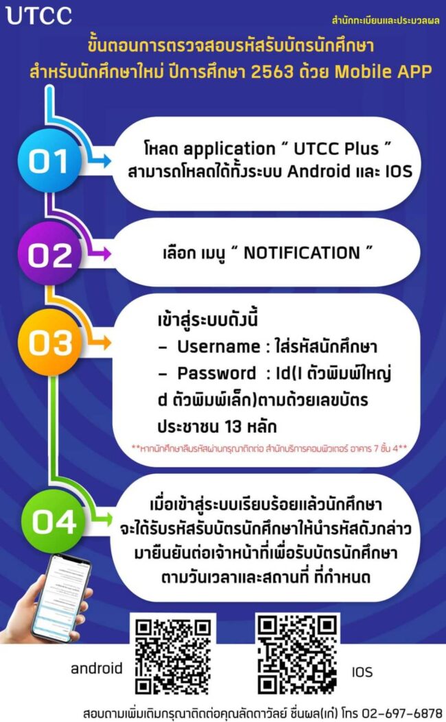 ขั้นตอนการตรวจสอบรหัสรับบัตรนักศึกษา ด้วย Mobile APP สำหรับนักศึกษาใหม่ ปีการศึกษา 2563 PR NewsBy utcc14/08/2020???? ขั้นตอนการตรวจสอบรหัสรับบัตรนักศึกษา ด้วย Mobile A…