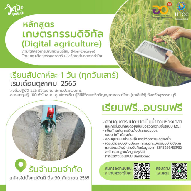 ทุนเรียนฟรี!! โอกาสพิเศษ…สำหรับบุคลากรทั่วไป เปิดรับสมัครเข้าร่วมหลักสูตร “เกษตรดิจิทัล” (Digital agriculture) โครงการบัณฑิตพันธุ์ใหม่ (Non-Degree)