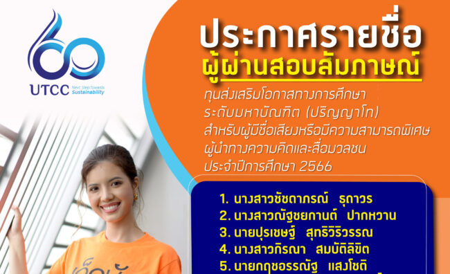 ประกาศผลการสอบสัมภาษณ์ คัดเลือกเข้าศึกษาต่อ ระดับปริญญาโท ทุนส่งเสริมโอกาสทางการศึกษา ประเภทสื่อมวลชนและผู้มีชื่อเสียง ประจำปีการศึกษา 2566 PR NewsBy utcc21/07/2023ผู้ได้รับทุนการศึกษา โปรดดำเนินการดังต่อไปนี้ สมัครเรีย…