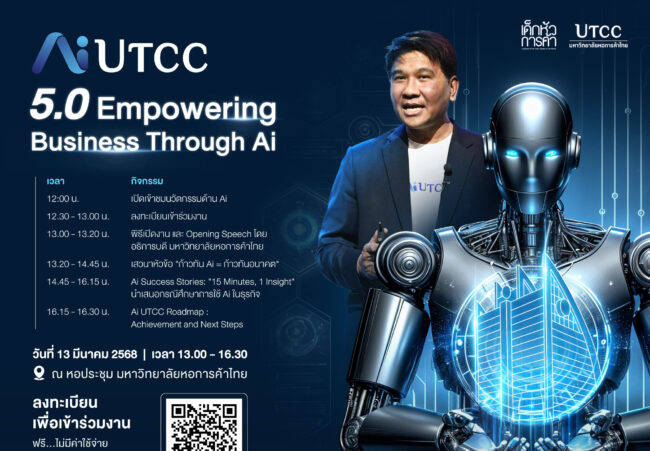 5.0 Empowering Business Through Ai by Ai UTCC งาน Ai แห่งปีที่ไม่ควรพลาด! 13 มีนาคมนี้