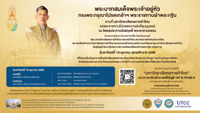 พระบาทสมเด็จพระเจ้าอยู่หัว ทรงพระกรุณาโปรดเกล้าฯ พระราชทานผ้าพระกฐิน ตามที่ มหาวิทยาลัยหอการค้าไทย ขอพระราชทานไปทอดถวายยังที่ชุมนุมสงฆ์