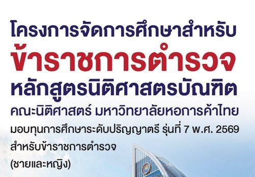 เปิดรับสมัครนักศึกษาใหม่ โครงการการศึกษาสำหรับข้าราชการตำรวจ หลักสูตรนิติศาสตร์บัณฑิต มหาวิทยาลัยหอการค้าไทย PR NewsBy admin05/02/2026เปิดรับสมัครนักศึกษาใหม่ โครงการการศึกษาสำหรับข้าราชการ…