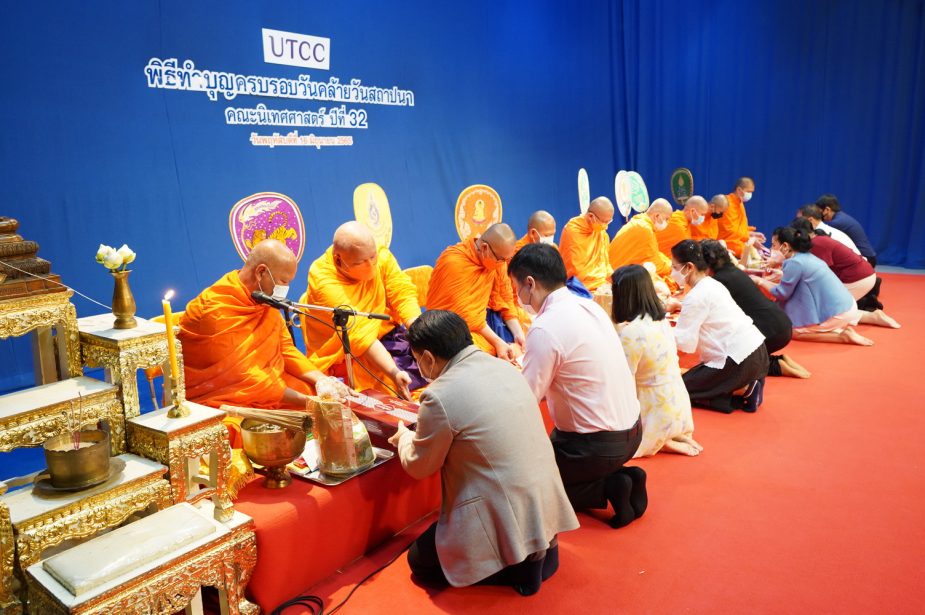 ศาสตราจารย์ ดร.ไพโรจน์ วิไลนุช คณบดีคณะนิเทศศาสตร์ เป็นประธานในพิธีเจริญพระพุทธมนต์ เนื่องในโอกาสครบรอบ 32 ปี คณะนิเทศศาสตร์ โดยภายในงานมีคณาจารย์ เจ้าหน้าที่ เข้าร่วมในพิธี ณ ห้องสตูดิโอ อาคาร 9 ชั้น 1 เมื่อวันที่ 16 มิถุนายน 2565