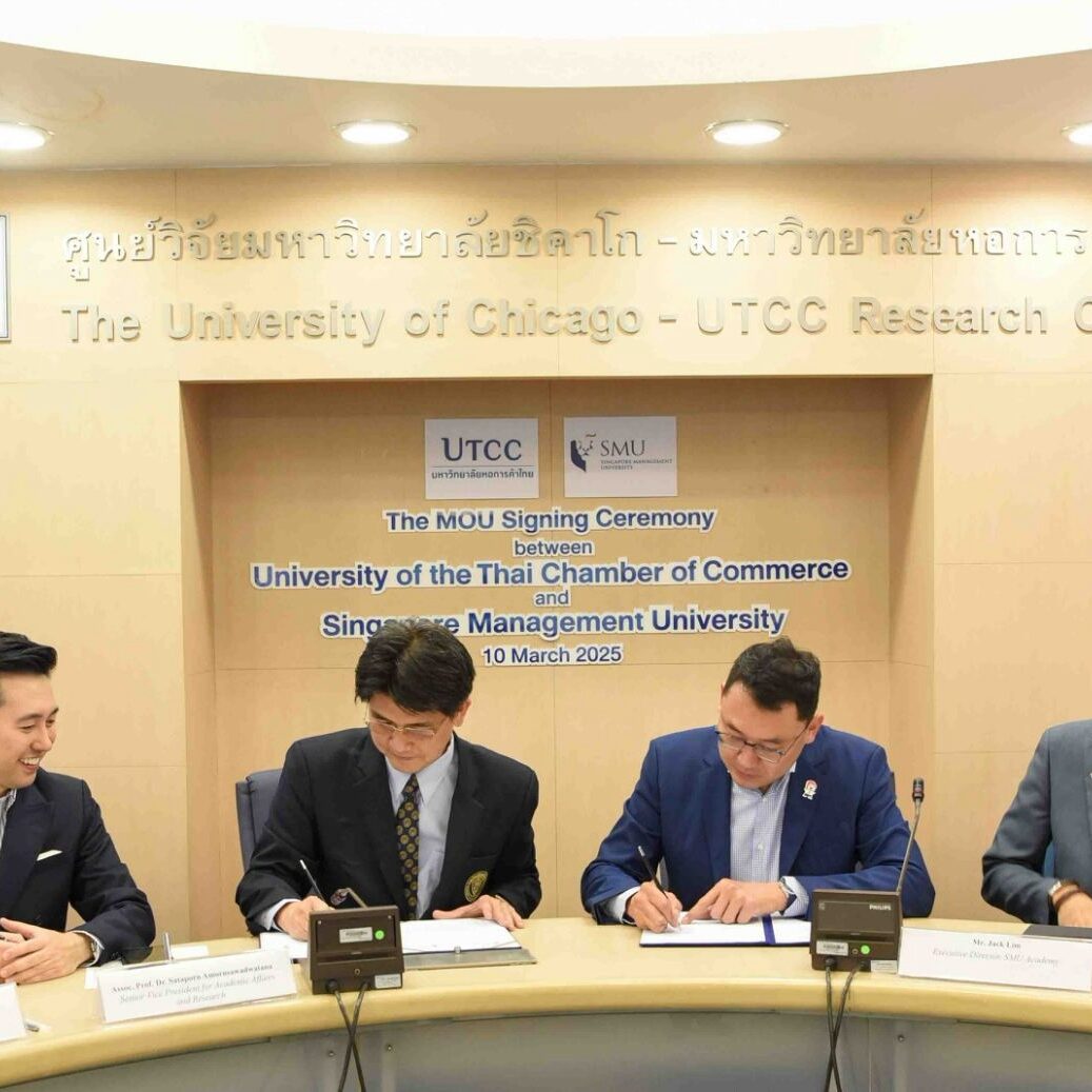 มหาวิทยาลัยหอการค้าไทย โดยวิทยาลัยนานาชาติเพื่อการจัดการ ร่วมกับกองวิเทศสัมพันธ์ จัดพิธีลงนามความร่วมมือ (MOU) ระหว่าง มหาวิทยาลัยหอการค้าไทย กับ Singapore Management University ประเทศสิงคโปร์ ซึ่งได้รับเกียรติจาก รองศาสตราจารย์ ดร.สถาพร อมรสวัสดิ์วัฒนา รองอธิการบดีอาวุโสสายงานวิชาการและงานวิจัย มหาวิทยาลัยหอการค้าไทย และ Mr. Jack Lim, Executive Director, SMU Academy, Singapore Management University ลงนามร่วมกัน โดยทางวิทยาลัยนานาชาติเพื่อการจัดการ มหาวิทยาลัยหอการค้าไทย และ Singapore Management University ได้มีการพูดคุยหารือ และเล็งเห็นถึงจุดหมายเดียวกัน เพื่อที่จะส่งเสริมการพัฒนาหลักสูตร การแลกเปลี่ยนทางวิชาการ และการวิจัย เพื่อยกระดับคุณภาพการศึกษาและสร้างประโยชน์แก่ทั้งนักศึกษาและคณาจารย์จากทั้งสองสถาบัน