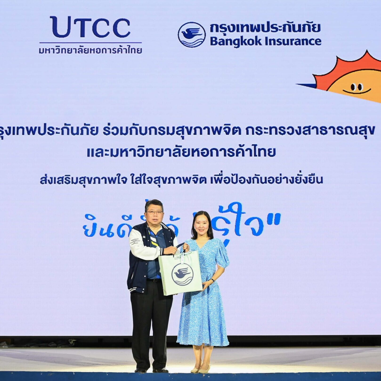 ดร.มานะ ตรีรยาภิวัฒน์ รองอธิการบดีฝ่ายกิจการนักศึกษา กล่าวเปิดกิจกรรม “กรุงเทพประกันภัย ส่งเสริมสุขภาพใจ ใส่ใจสุขภาพจิต เพื่อการป้องกันอย่างยั่งยืน” ภายใต้แนวคิด ยินดีที่ได้ “รู้ใจ” ซึ่งเป็นความร่วมมือระหว่าง กรุงเทพประกันภัยและกรมสุขภาพจิต กระทรวงสาธารณสุข และมหาวิทยาลัยหอการค้าไทย