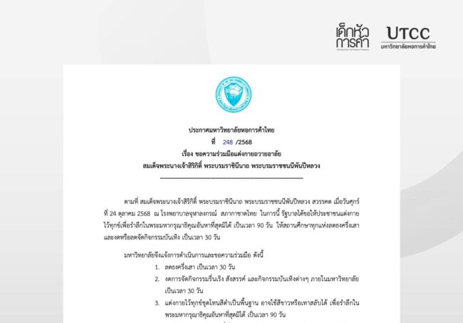 ประกาศมหาวิทยาลัยหอการค้าไทย ที่ 248 /2568 เรื่อง ขอควา…