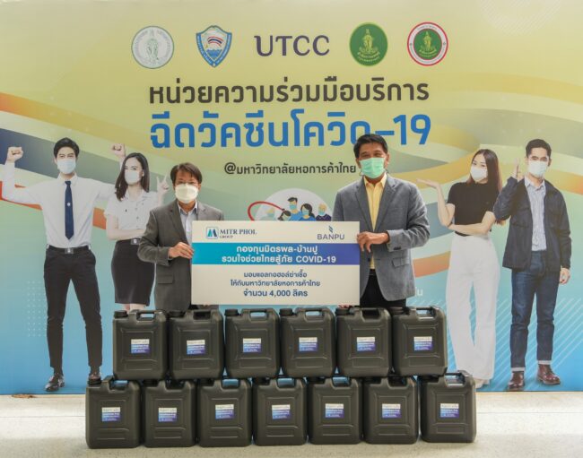 มหาวิทยาลัยหอการค้าไทย โดย ผศ.ลักขณา เศาธยะนันท์ รองอธิการบดีอาวุโสสายงานบริหาร รับมอบเเอลกอฮอล์ จำนวน 250 ขวด จาก จิตอาสาพระราชทาน