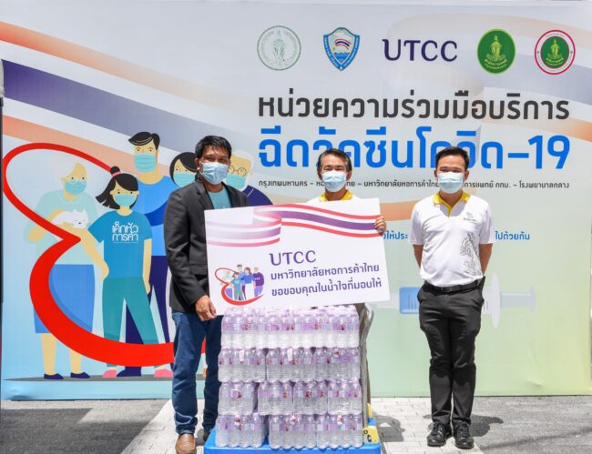 รับมอบน้ำดื่มจำนวน 420 แพ็ค จากบริษัท บุญรอดบริวเวอรี่ จำกัด เพื่อให้มหาวิทยาลัยหอการค้าไทย นำไปแจกจ่ายให้อาสาสมัครของศูนย์ให้บริการฉีดวัคซีนนอกโรงพยาบาล