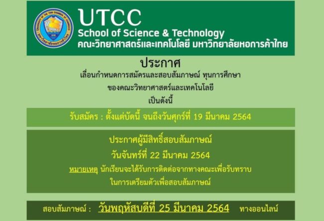 คณะวิทยาศาสตร์ฯ เลื่อนการสมัครและสอบสัมภาษณ์ทุนการศึกษา #Dek64