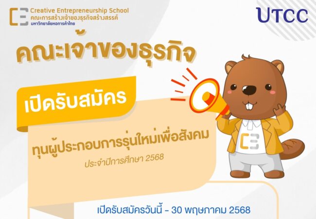 เปิดรับสมัครทุนผู้ประกอบการรุ่นใหม่เพื่อสังคม วิทยาลัยผู้ประกอบการ ประจำปีการศึกษา 2568