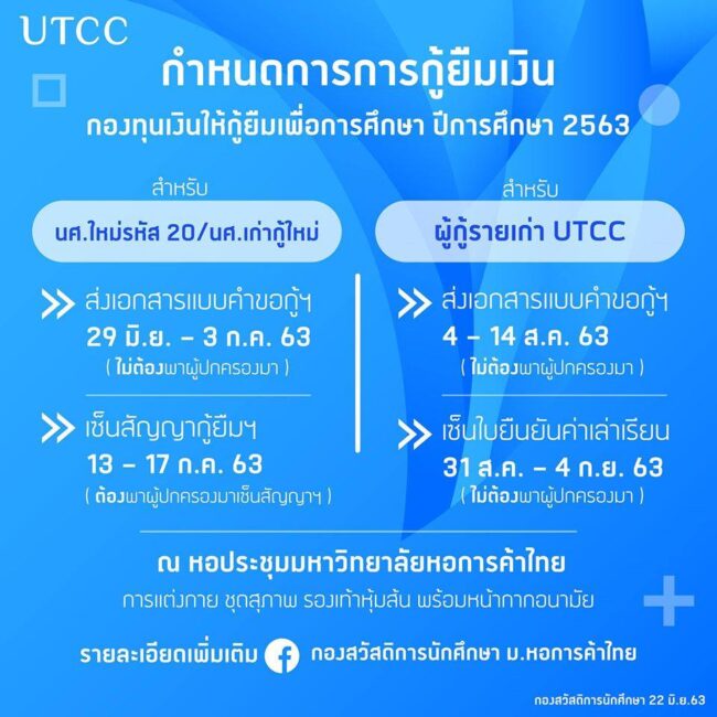 กำหนดการส่งเอกสารแบบคำขอกู้ 2563 สำหรับนักศึกษา “ยังไม่เคยกู้ยืมที่มหาวิทยาลัยหอการค้าไทย”
