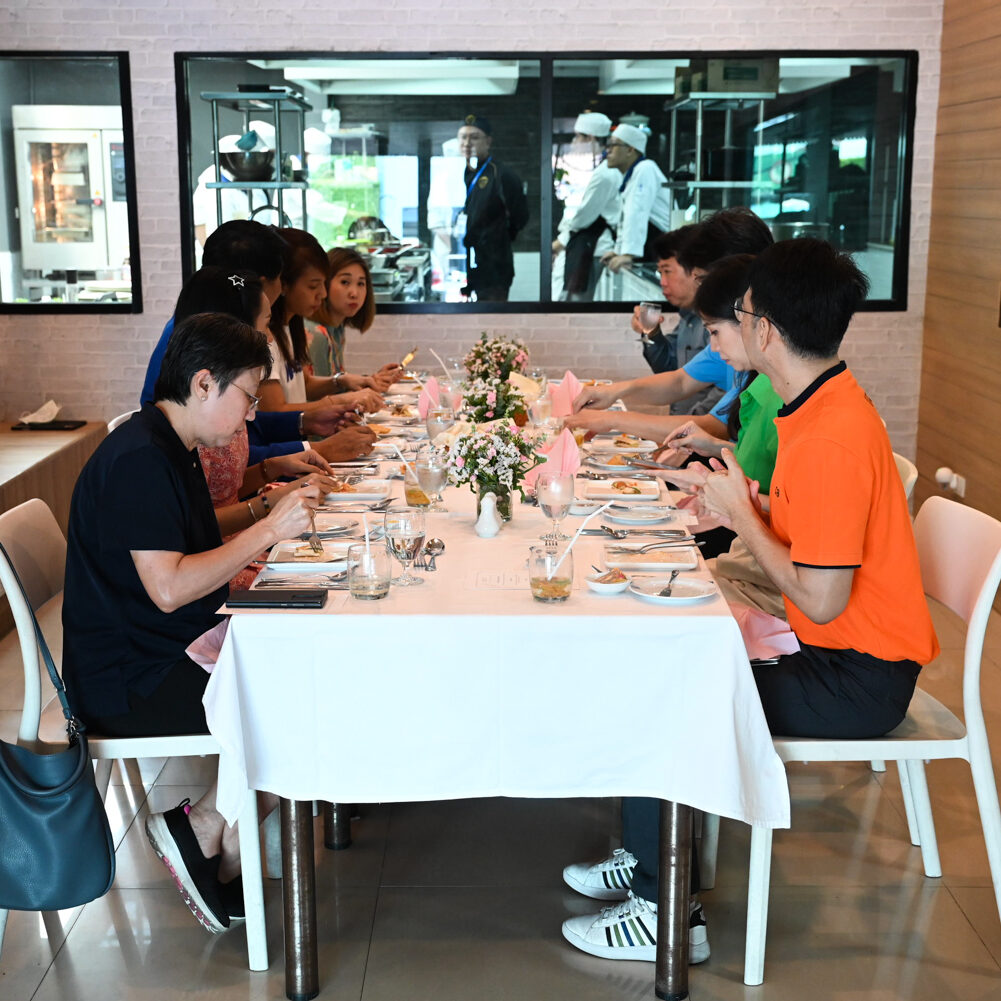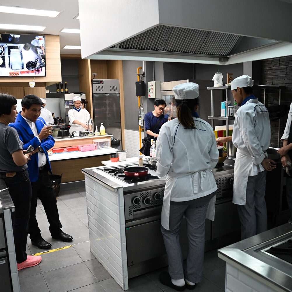 เมื่อวันที่ 3 เมษายน 2567 รศ.ดร.ธนวรรธน์ พลวิชัย อธิการบดีมหาวิทยาลัยหอการค้าไทย นำคณะผู้บริหารมหาวิทยาลัยฯ มาร่วมรับประทานอาหาร ฝีมือนักศึกษาสาขาวิชาศิลปะการประกอบอาหารและการจัดการภัตตาคาร คณะการท่องเที่ยวและอุตสาหกรรมบริการ ในบรรยากาศตั้งแต่การเริ่มทำอาหารจนถึงการเสิร์ฟ โดยมีวัตถุประสงค์เพื่อให้นักศึกษา ภายในสาขาได้ศึกษารูปแบบการจัดกระบวนการเรียนรู้การประกอบอาหารทั้งภาคทฤษฎีควบคู่ไปกับการฝึกปฏิบัติจริง นักศึกษาสามารถนำความรู้และทักษะไปประกอบอาชีพได้จริงอย่างมีคุณภาพ หากน้องๆ มีฝันอยากทำอาหาร มาเรียนรู้กับตัวจริงได้เลยที่นี่ UTCC ณ ห้องปฎิบัติการ Chamber kitchen มหาวิทยาลัยหอการค้าไทย