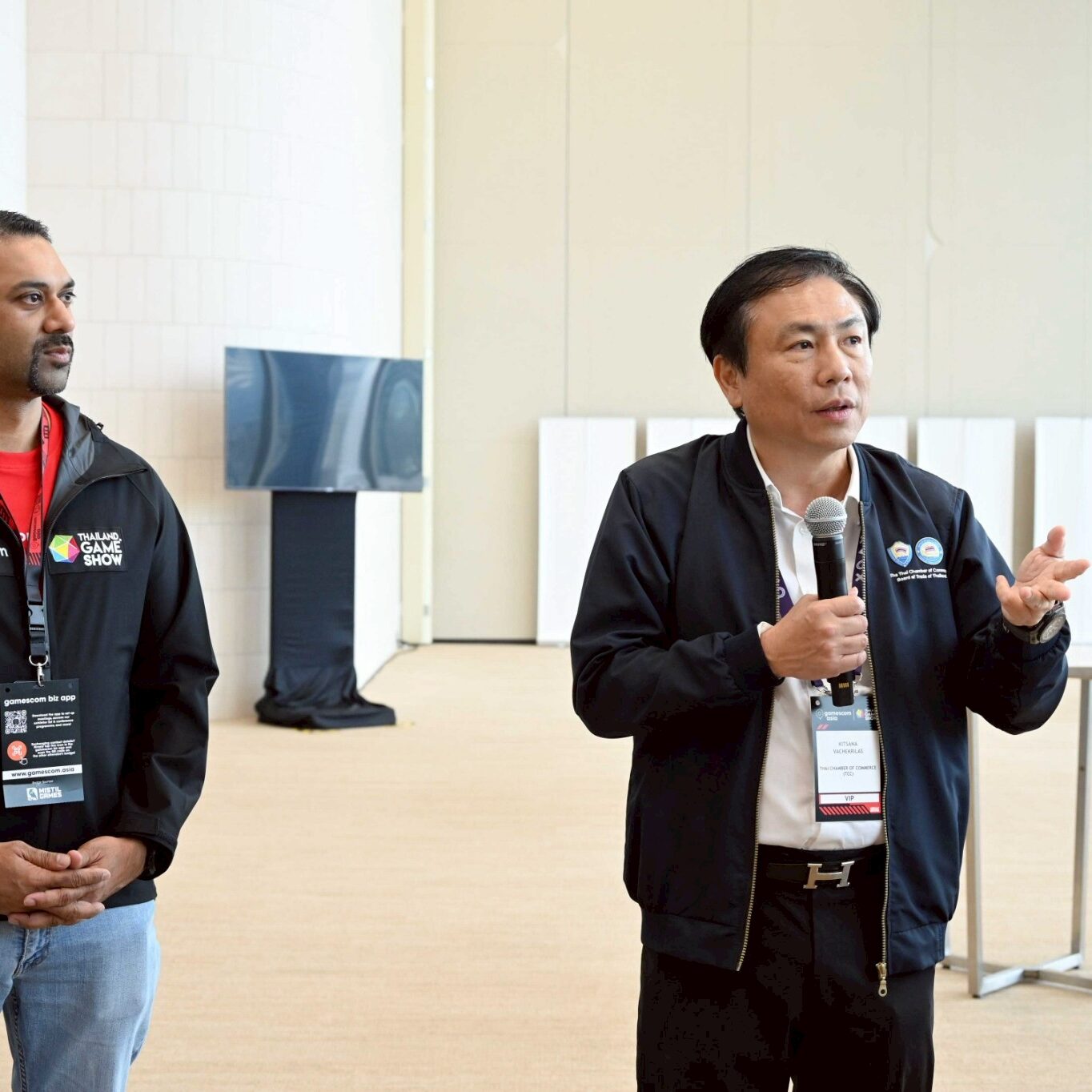 ภายในงานได้รับเกียรติจาก คุณกลินท์ สารสิน ประธานกิตติมศักดิ์หอการค้าไทย และดร.กฤษณะ วจีไกรลาศ รองประธานกรรมการหอการค้าไทย นำเสนอกิจกรรมภายในงานและ Routing พร้อมทั้งนำเยี่ยมชม Business Zone และ Entertainment Zone โดยมี Mr. Prakash Ramajillu (TBC) General Manager, Koelnmesse Pte Ltd. ให้ข้อมูลเกี่ยวกับการจัดงานเกมในระดับนานาชาติ โดยหอการค้าไทย ในฐานะผู้สนับสนุนการจัดงาน Gamescom Asia x Thailand Game Show 2025 รวมจัดแสดง ทั้งโซน Business และ Entertainment โดยนำเครือข่ายผู้ประกอบการรุ่นใหม่จากโครงการ YEC (Young Entrepreneur Chamber of Commerce) และมหาวิทยาลัยหอการค้าไทย ร่วมออกบูธนิทรรศการการศึกษาภายในงานอีกด้วย