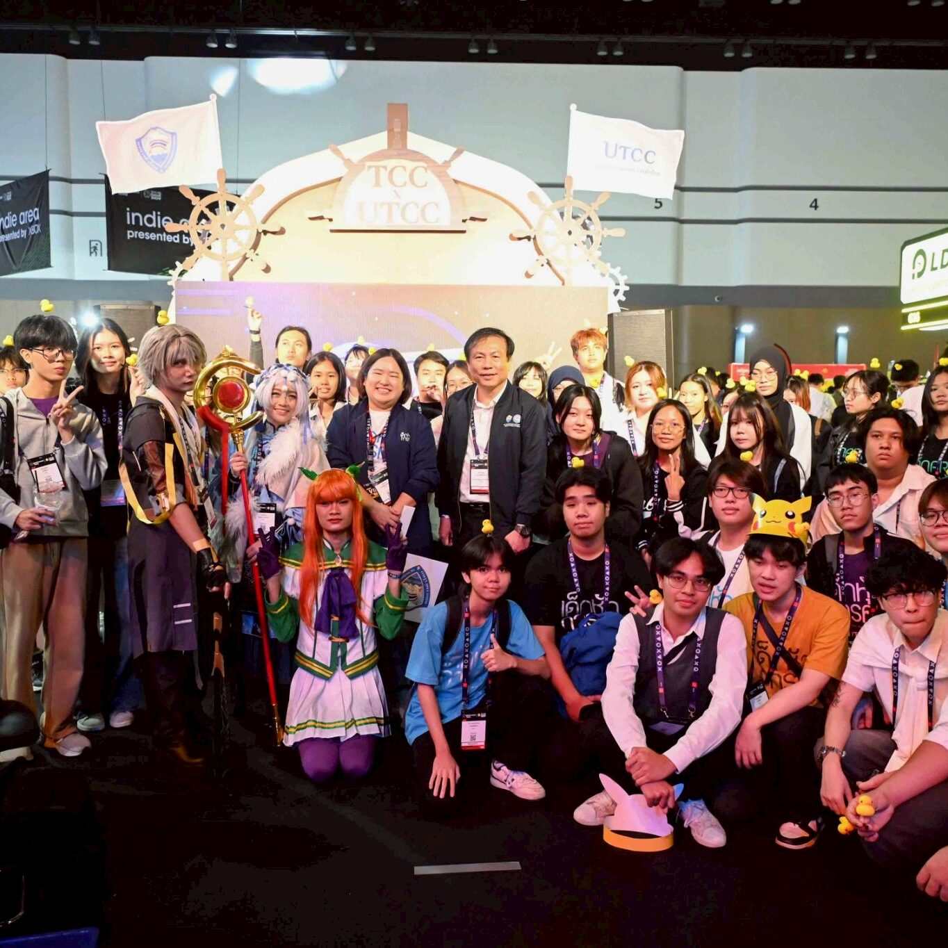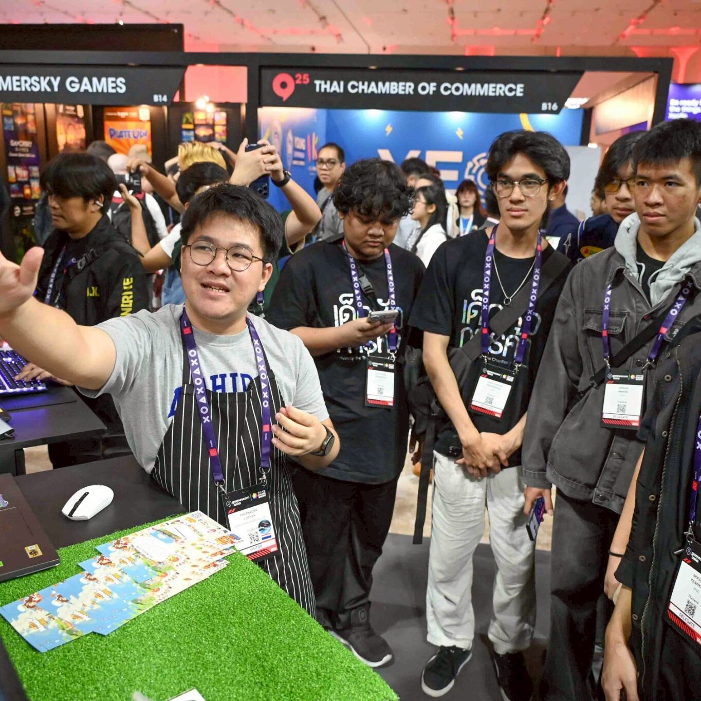 คุณไชยชนก ชิดชอบ รัฐมนตรีว่าการกระทรวงดิจิทัลเพื่อเศรษฐกิจและสังคม และคุณสิทธิชัย เทพไพฑูรย์รองประธานสมาคมอุตสาหกรรมซอฟต์แวร์เกมไทย ประธานเจ้าหน้าที่ฝ่ายการตลาด (CMO) บริษัท เดบัซ จำกัด ร่วมถ่ายภาพเป็นที่ระลึกกับนักศึกษามหาวิทยาลัยหอการค้าไทย ในงานมหกรรมเกมระดับโลก ! Gamescom Asia x Thailand Game Show 2025 ณ ศูนย์การประชุมแห่งชาติสิริกิติ์ ชั้น G ฮอลล์ 2–4 โดยงานดังกล่าวจัดขึ้น ระหว่างวันที่ 17-19 ตุลาคม 2568