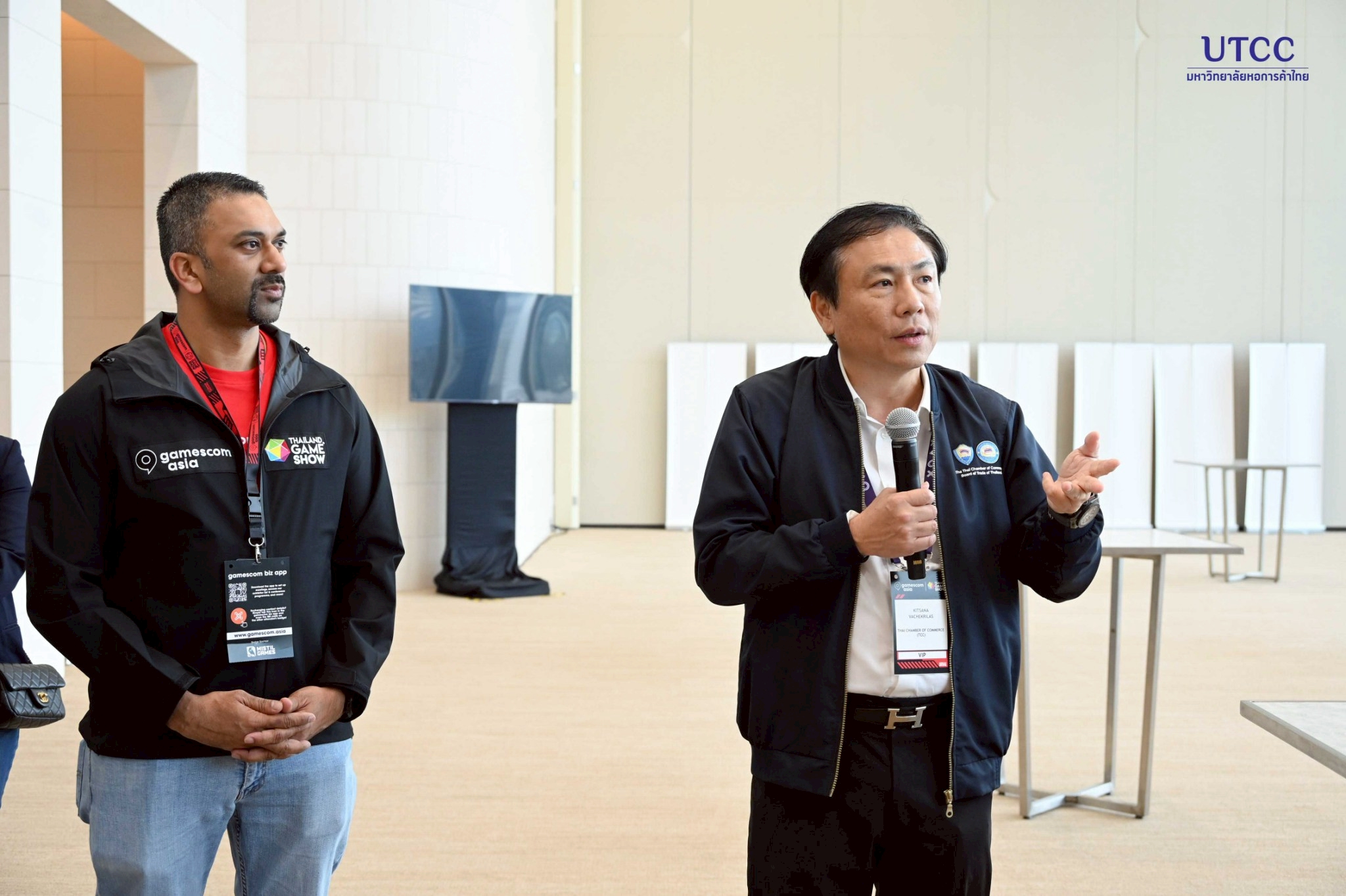 ภายในงานได้รับเกียรติจาก คุณกลินท์ สารสิน ประธานกิตติมศักดิ์หอการค้าไทย และดร.กฤษณะ วจีไกรลาศ รองประธานกรรมการหอการค้าไทย นำเสนอกิจกรรมภายในงานและ Routing พร้อมทั้งนำเยี่ยมชม Business Zone และ Entertainment Zone โดยมี Mr. Prakash Ramajillu (TBC) General Manager, Koelnmesse Pte Ltd. ให้ข้อมูลเกี่ยวกับการจัดงานเกมในระดับนานาชาติ โดยหอการค้าไทย ในฐานะผู้สนับสนุนการจัดงาน Gamescom Asia x Thailand Game Show 2025 รวมจัดแสดง ทั้งโซน Business และ Entertainment โดยนำเครือข่ายผู้ประกอบการรุ่นใหม่จากโครงการ YEC (Young Entrepreneur Chamber of Commerce) และมหาวิทยาลัยหอการค้าไทย ร่วมออกบูธนิทรรศการการศึกษาภายในงานอีกด้วย